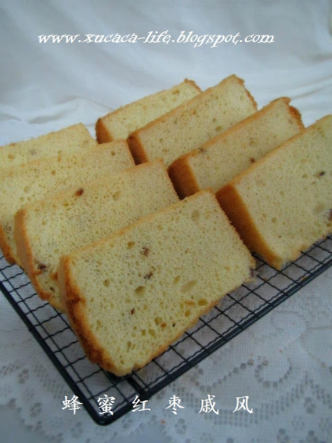 8)蛋糕烘好后,立刻取出烤箱倒扣。待凉后才脱模享用。