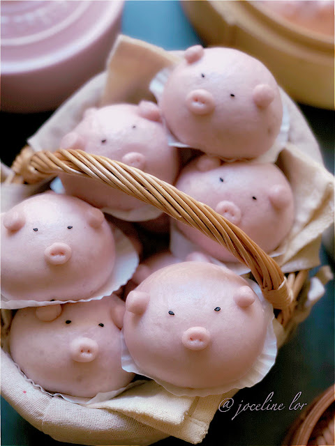 6)将包子放在纸上,黏上小猪猪五官。 放置等待最后的发酵30-40分钟。