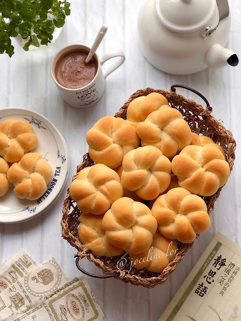$ 0 0 当面包遇到马铃薯咖哩的幸福滋味。。花卷面包材料:高筋面粉 300克低筋面粉 50克鲜奶150克鸡蛋1个牛奶粉 20克盐 2克赤砂糖 20克牛油 30克酵母 5克【做法】1)把面团材料混合搓成光滑有弹性的面团或放入搅拌机打面团大约30分钟。2)面团取出放置休面10分钟。将面团平均分割16-17份。3)排气后将面团搓长形,打一节卷起花型状。4)放在烤盘上等待最后发酵大约45分钟。5)送入预热后的烤箱烘烤约15分钟或表层变得金黄色即可。6)面包取出烤箱后,移放在网架上,表层涂上一层牛油,待凉后食用。