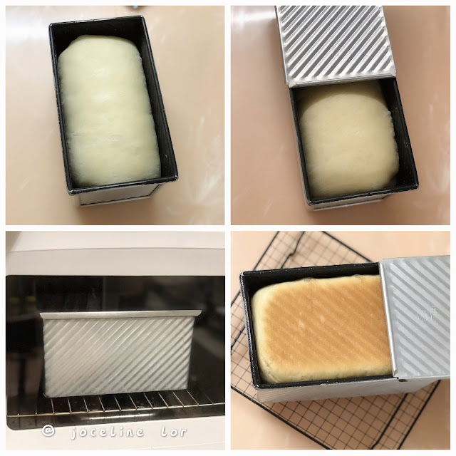 3)放在吐司烤盘里等待最后发酵大约45分钟或面团发酵至8分高的层度可以把吐司盖关上。