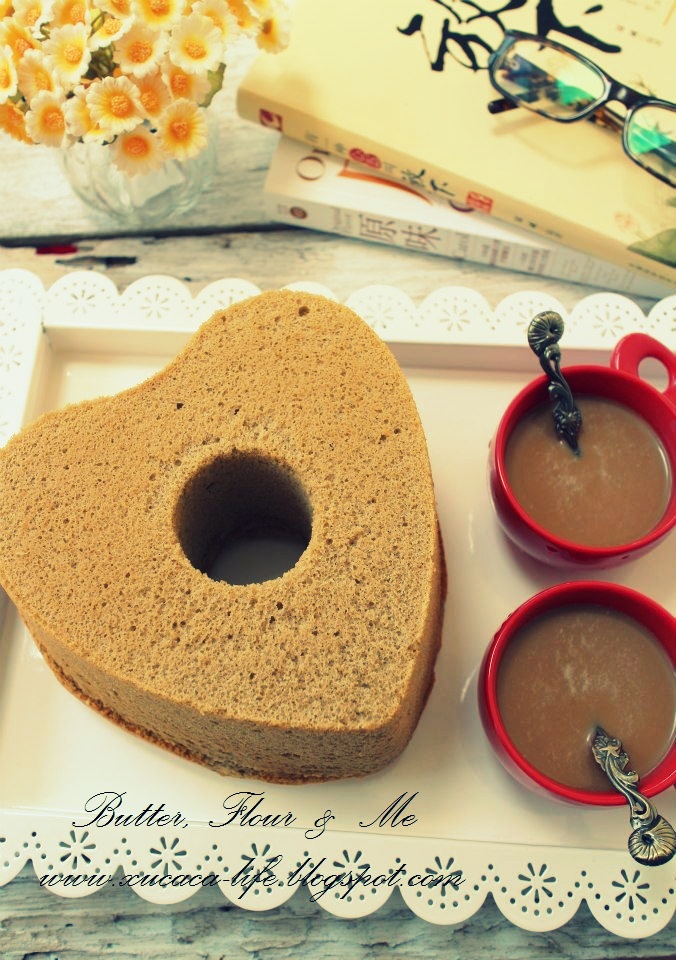 $ 0 0 我将参与Aspiring Bakers #30: it's Tea time! (April 2013) hosted by Food Playground. 红糖奶茶戚风材料:蛋黄 3个红糖 20克盐 1/8茶匙粟米油 20克浓奶茶 50克低筋面粉 60克粟米粉 5克蛋白 3个白醋 几滴细砂糖 50克做法:1) 蛋黄+红糖一起搅拌均匀,稍微打发。加入玉米油拌匀。 然后加入香浓奶茶搅拌至均匀。2) 筛入低筋面粉和粟米粉搅拌成均匀面糊。3) 蛋白+白醋微打发,分次加入细砂糖打至湿性发泡。 (过程大约2分钟)4) 把蛋白霜分次加入蛋黄面糊里用刮刀轻轻搅拌均匀。5) 再倒入戚风模里,轻轻把空气敲出。6) 烤箱预热165度,烘烤大约45分钟。7) 蛋糕烘好后,立刻把蛋糕取出倒扣,待冷脱模才享用。 是谁偷了我半个心。。。。。。Enjoy!