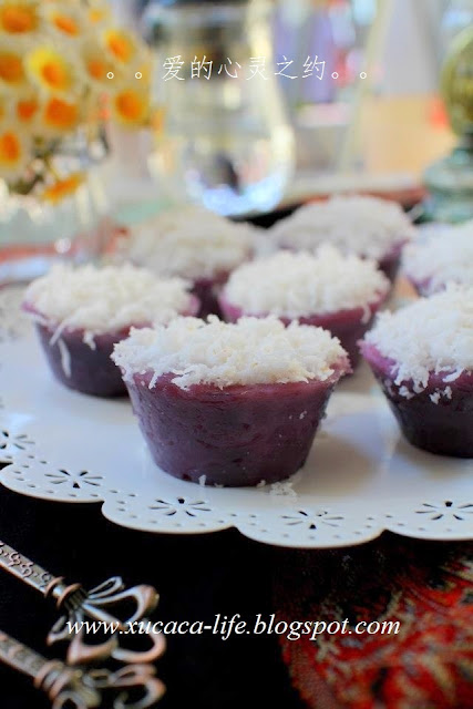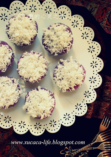 嫩白椰丝 150克 + 盐 1/4茶匙 (蒸软)