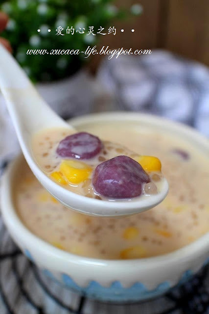3)加入玉米粒煮滚,然后加入沙谷粒。