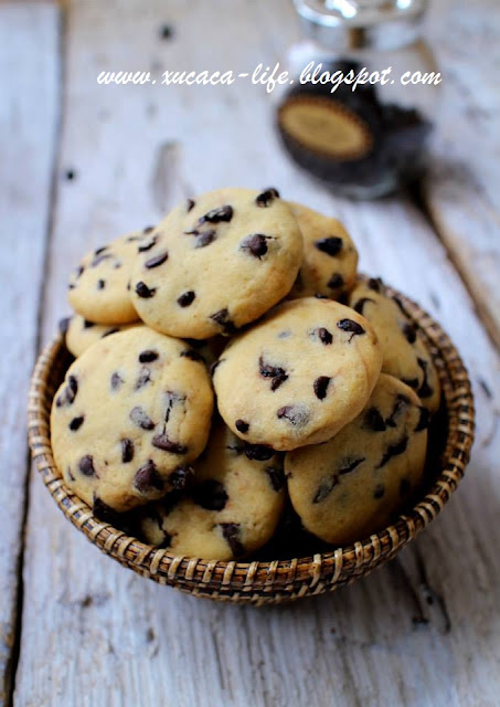 $ 0 0 家里宝贝学校庆教师节。宝贝女儿临睡前向娘子要求了曲奇饼干带去学校。所以就选了一道简单又讨小朋友喜欢的巧克力豆饼干。巧克力豆饼干材料:牛油 150克黄砂糖 80克朗姆酒 1汤匙鸡蛋 2个低筋面粉 350克小苏打 1/4茶匙巧克力豆 200克做法:1)奶油 + 黄砂糖用电动器搅拌均匀至有点发白。2)全蛋分次加入搅拌均匀。3)加入1汤匙的朗姆酒。搅拌均匀后筛入低筋面粉 + 小苏打。4)最后加入巧克力豆搅拌成均匀的面团。5)把面团分割每份大约 12-15克,搓圆。压扁放在铺了纸的烤盘上。6)预热烤箱,170度烘烤大约 25分钟。饼干烘好后,取出放在铁架上待凉。然后可把饼干收入封密罐子即可。