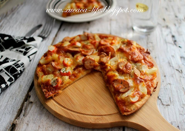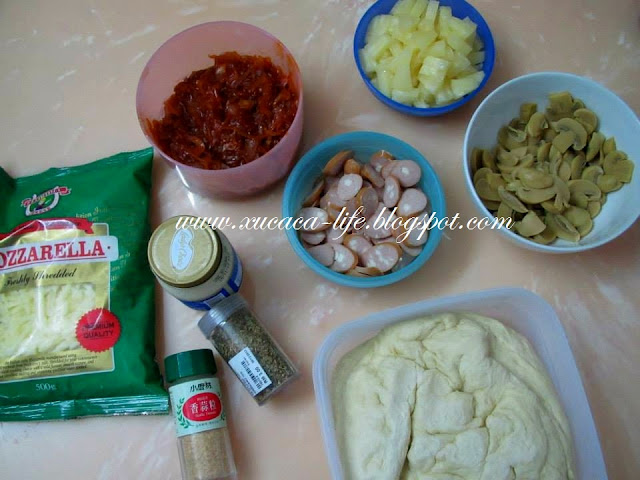 pizza馅料就个人而定了。娘子爱简单,最爱的是这几种材料了。其实pizza加入切丁的黄梨,口感蛮好的。