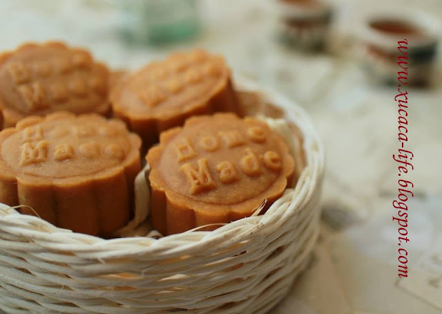 没有买到莲蓉馅,所以只好做了椰丝馅的。这也是出炉后最快能享用的月饼。