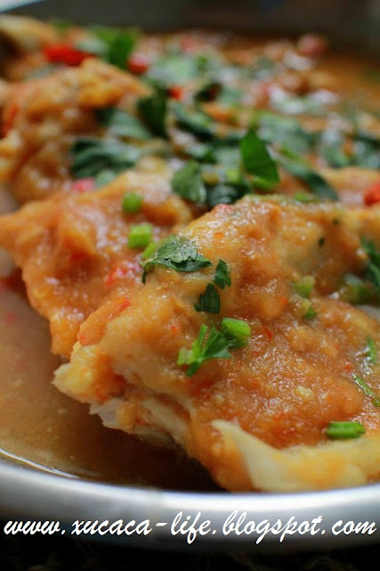 5)蒸锅加水煮滚,把鱼放入锅里蒸大约8分钟或熟即可。