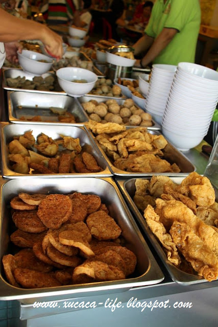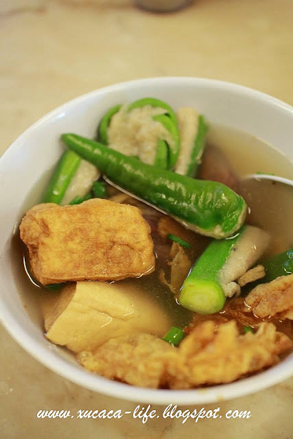 所以可以在档口前加料。有酿豆腐、肉丸、炸饺子、豆皮等等。味道还不错的。价钱也不会贵。