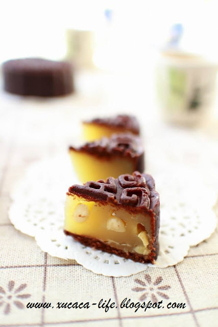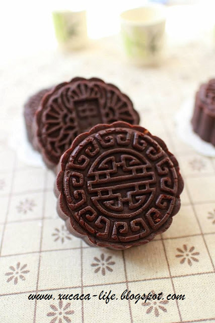 为了配合小朋友的口味,希望宝贝们会吃月饼,所以做了这个巧克力皮的。