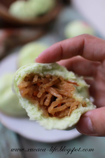 乱来一场,蒸了一锅8个的斑兰包子。感觉不错,再努力地搓多一份,做多几个包子送给对面安老院的阿公吃。