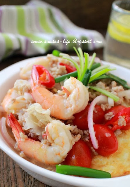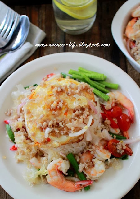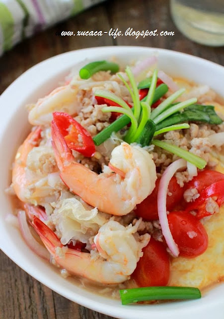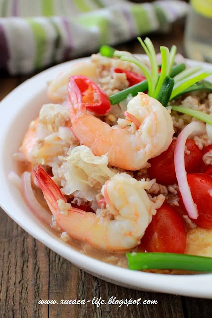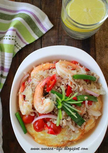 现在康复了,就很想吃些比较开胃的食物。所以就弄了一个简单的泰式鲜虾、煎蛋沙拉来开一开胃 。。。。。。
