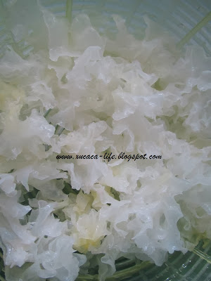 (5)白木耳浸泡后,可以用滚水烫过,切碎。