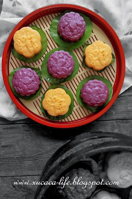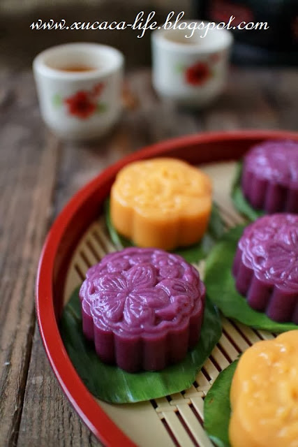 难得在菜市里买到了紫薯。所以就加了橙色番薯做了家人想吃的红龟糕。
