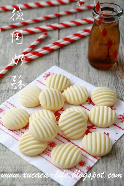 $ 0 0 祝福大家圣诞节快乐 。。。。。。幸福安康!德式奶酥材料:牛油 - 250克糖粉 - 70克马铃薯粉 - 250克低筋面粉 / 特幼面粉 - 100克做法:1)先把牛油软化(手指按下有软就可使用),加入糖粉搅拌均匀至发白。2)筛入马铃薯粉和面粉搅拌成均匀面团。3)把面团搓成小圆粒,用叉子压扁放在烤盘上。4)烤箱预热后,170烘烤大约16分钟至稍微金黄色便可。Merry X'mas !!