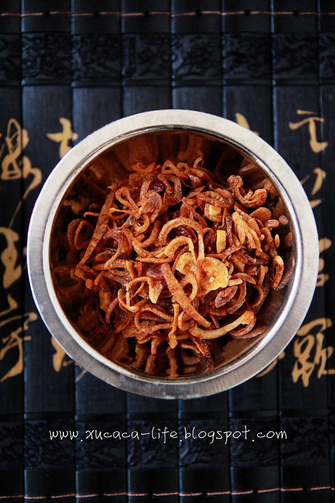 香油葱(小葱拨开、切丝。加入油锅里以中火慢慢炸香至金黄色即可)