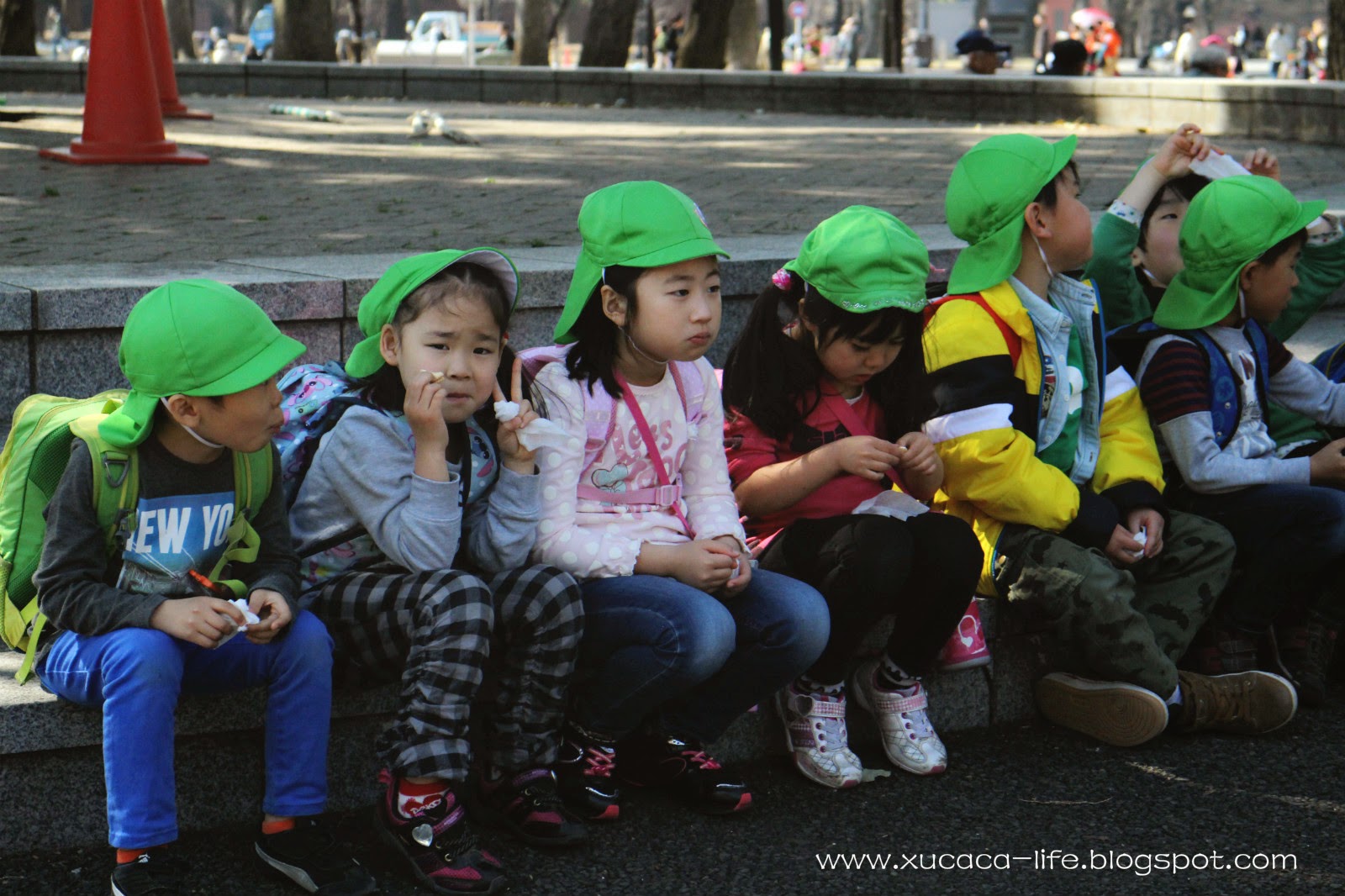 看来东京的治安很好。可见几位小朋友可以一起等校车。