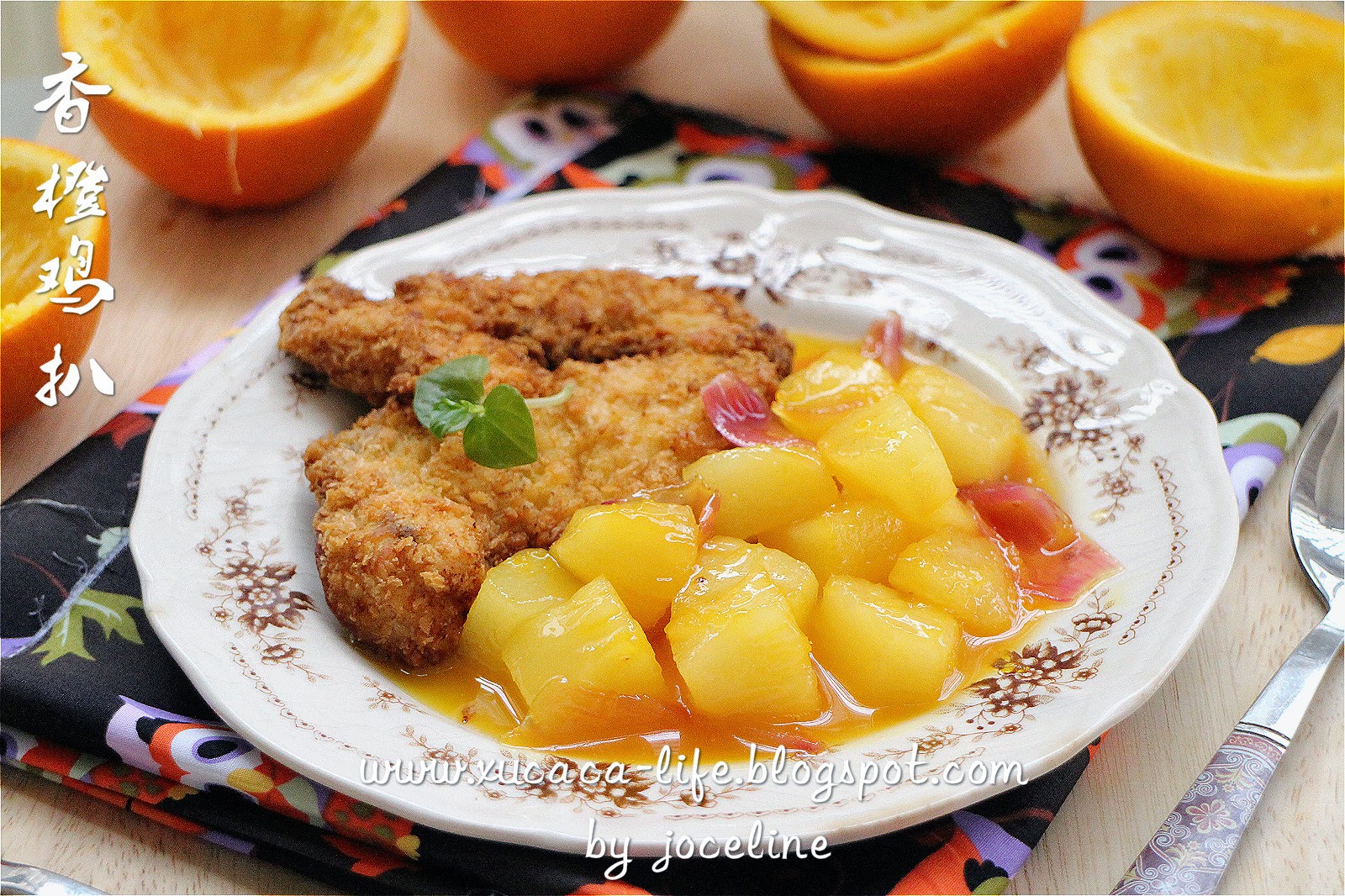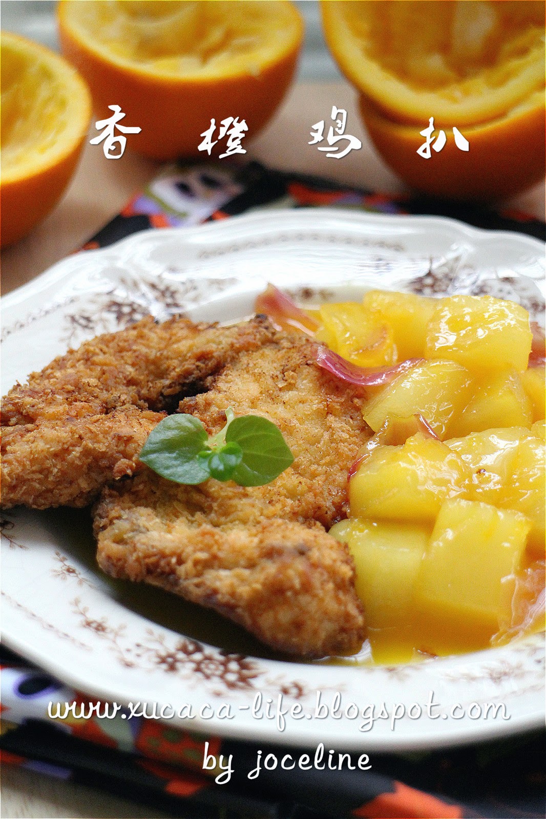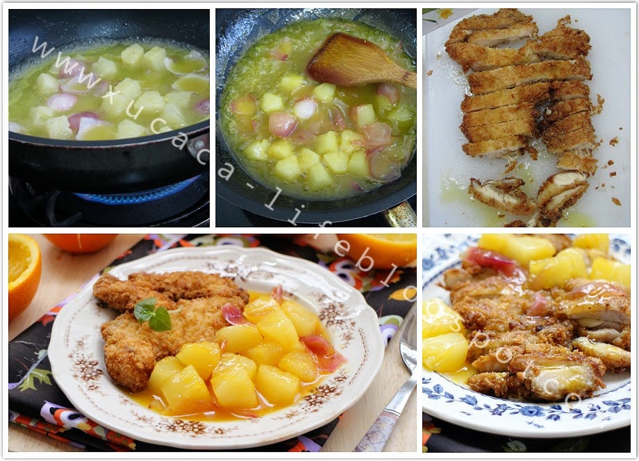 3)把以上准备好的炸鸡扒切成片,要吃炸鸡扒时,再把香橙酶汁淋上便可。