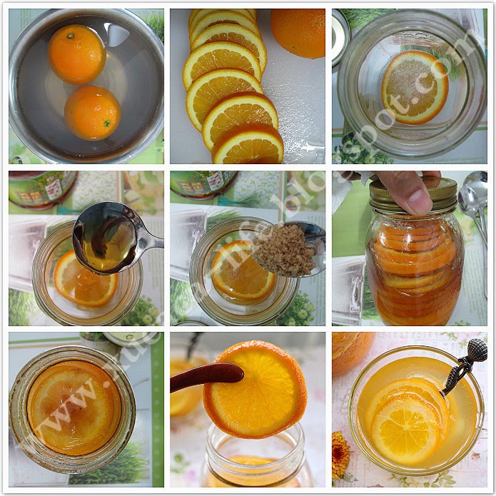 5)要喝的时候,把橙片取出,用干的汤匙把酱汁舀出,然后用温水冲泡即可。