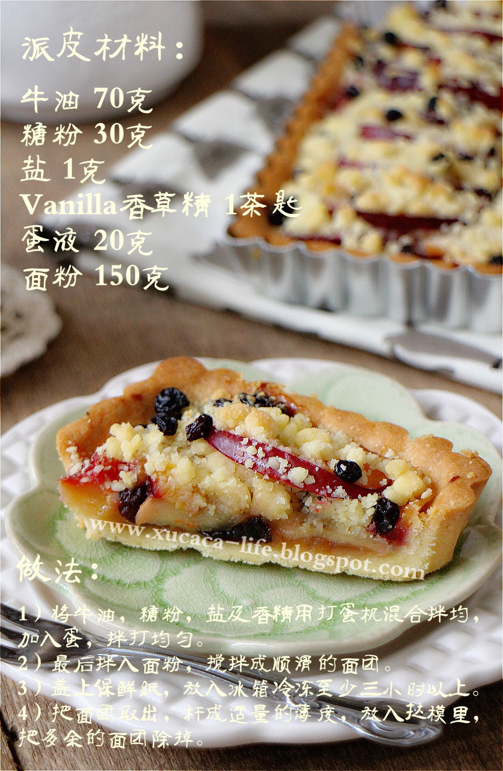 准备简单的馅料,加上香脆的奶油酥粒。这酸甜的李子派可加分了。