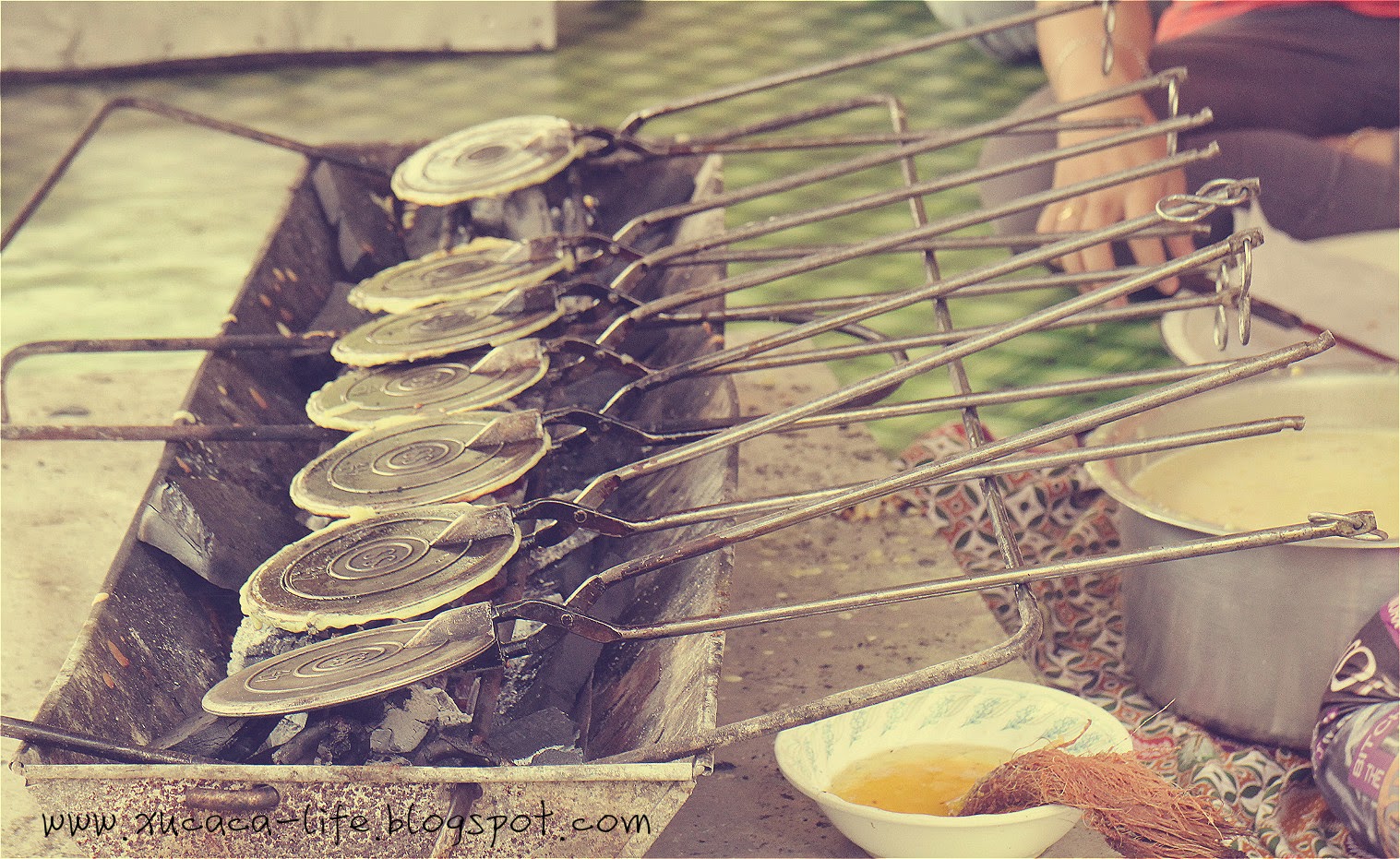 宝贝们没机会在沙滩玩沙。但还好有机会见到制作 kuih kapet 的过程。