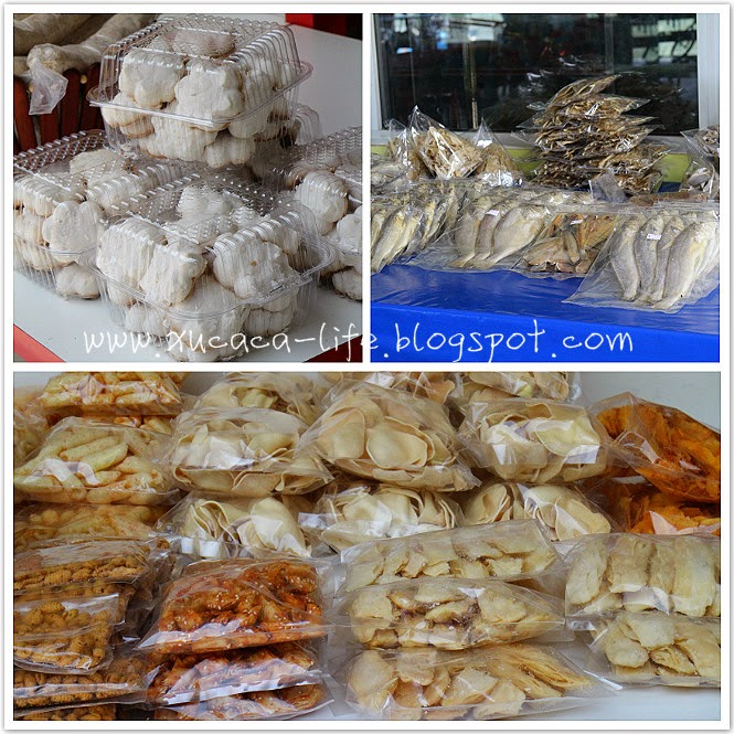 一些土产。咸鱼、江鱼仔、番婆饼、虾饼等等。
