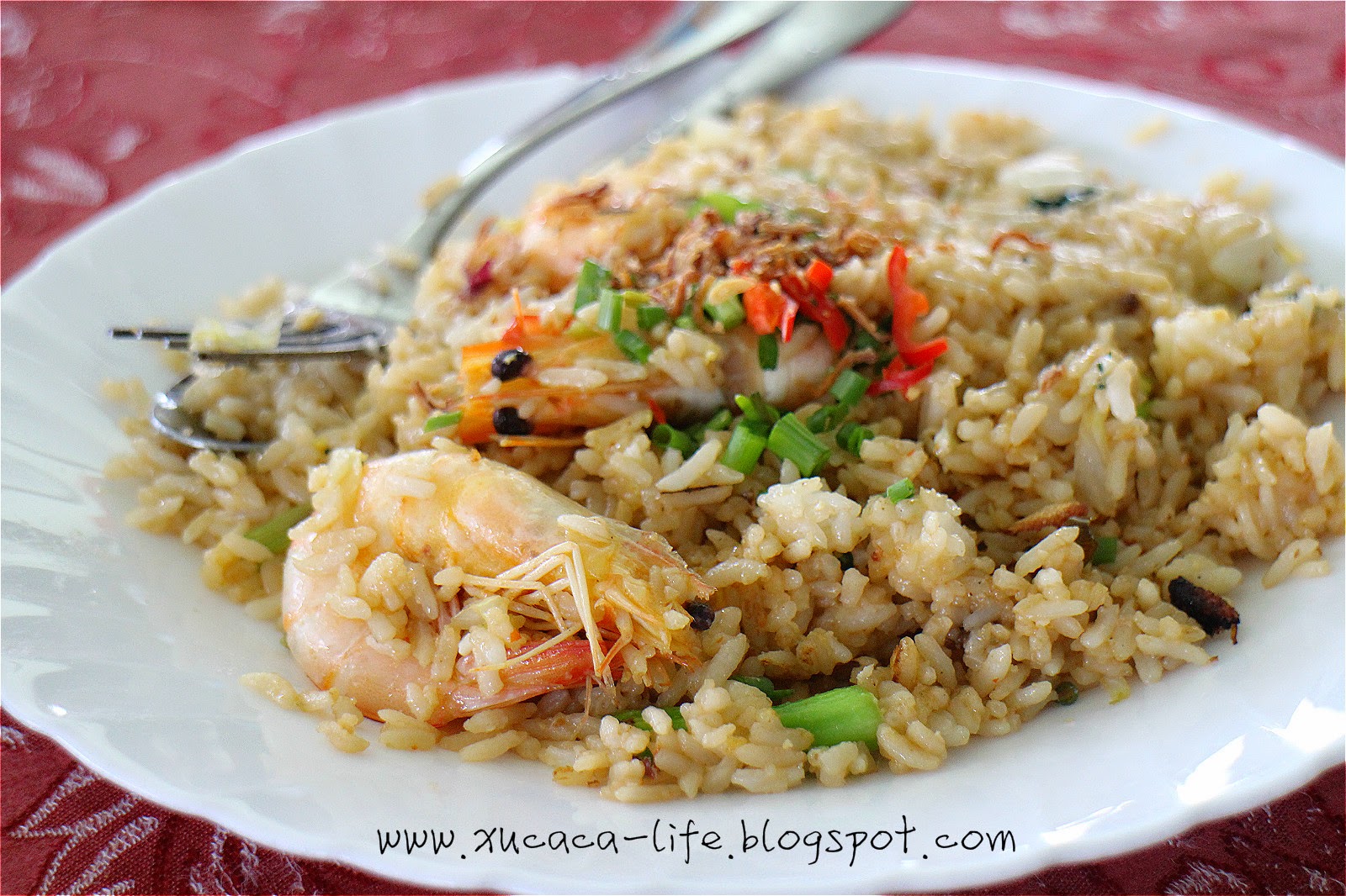 娘子不等了。就叫了两碟 mee udang 和 nasi goreng udang 来医肚子好了。