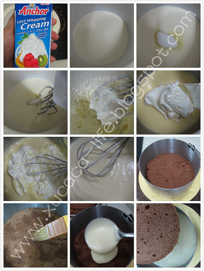 5)UHT鲜奶油+细砂糖一起打发。(也不可过发,大约7-8分发就好)