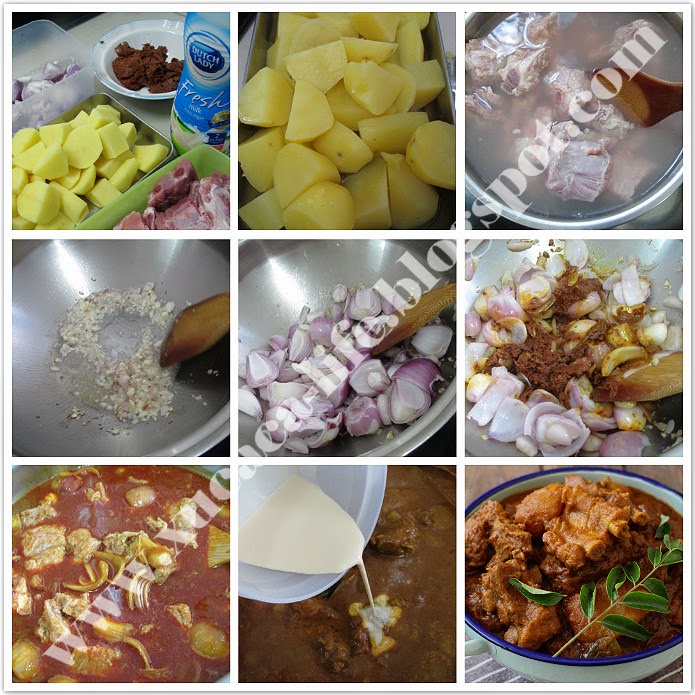 然后倒入咖哩辣椒糊慢火炒香。加入排骨和马铃薯炒拌。