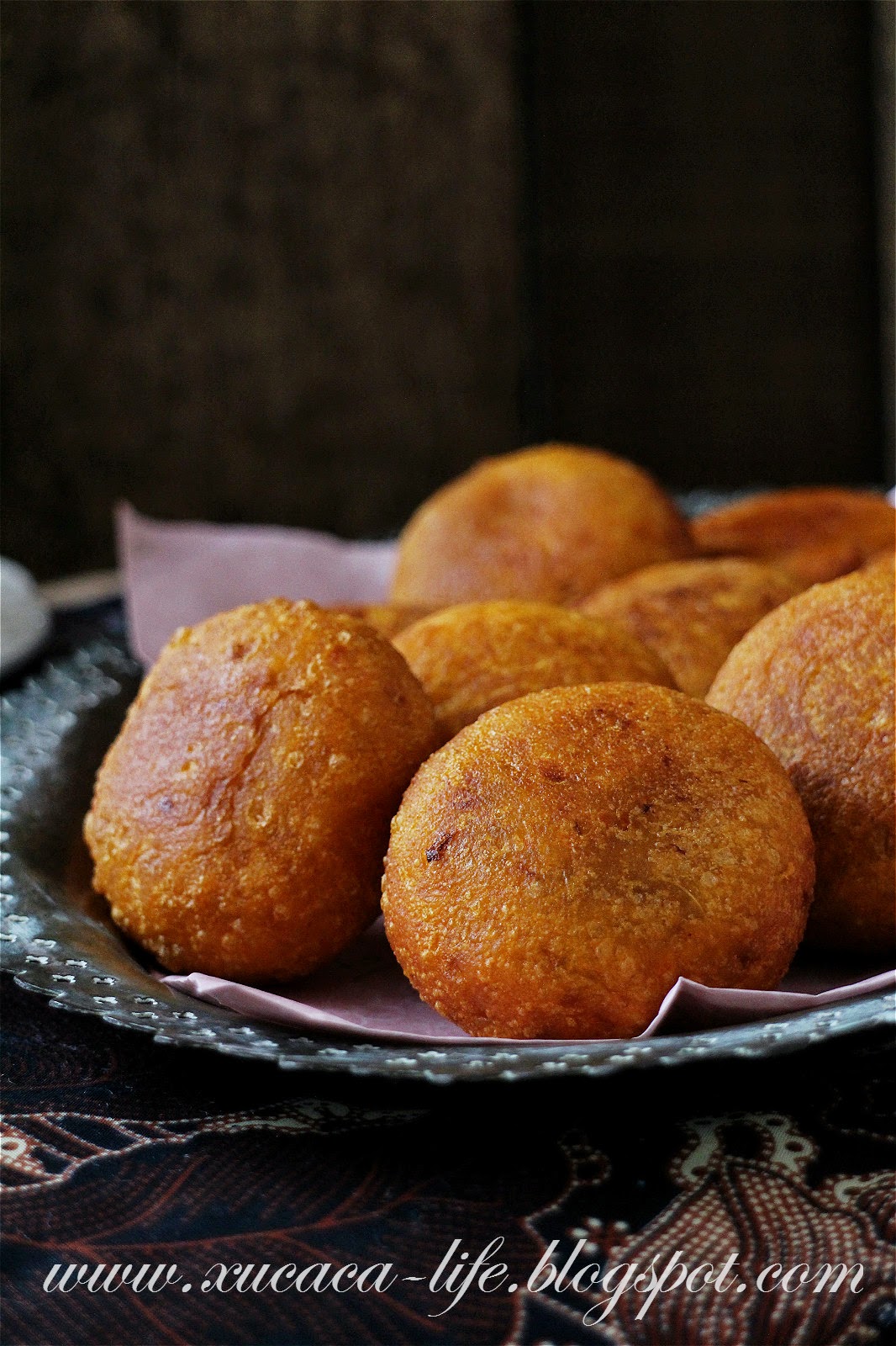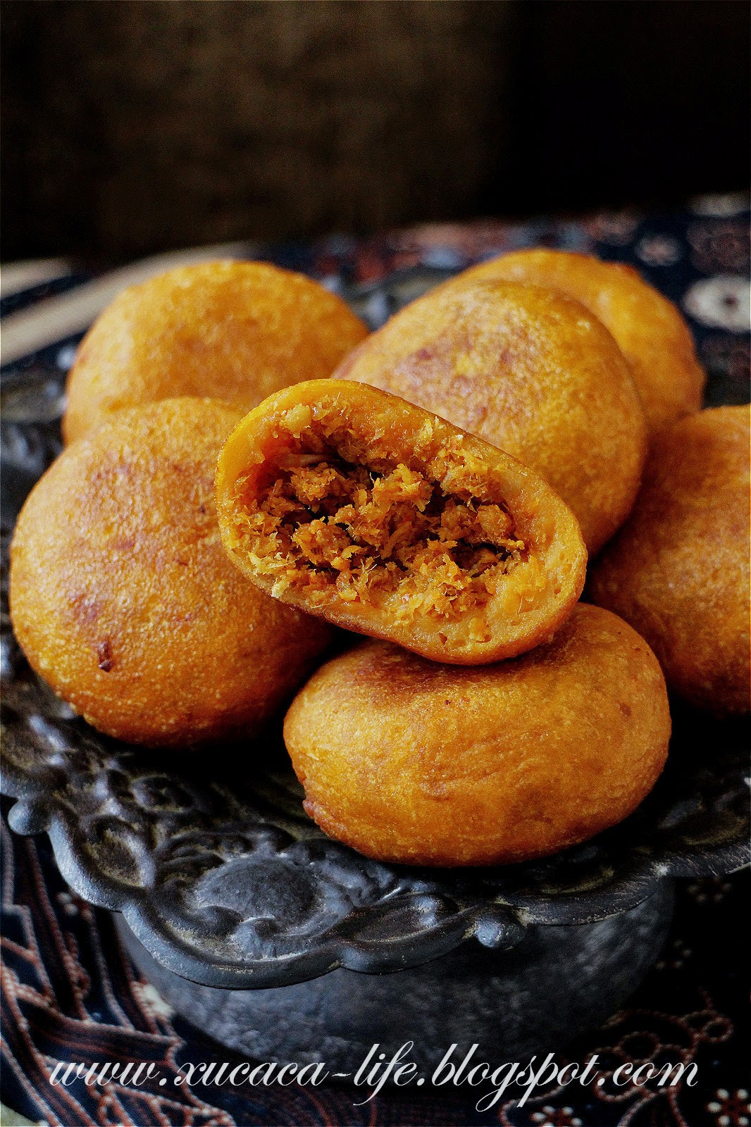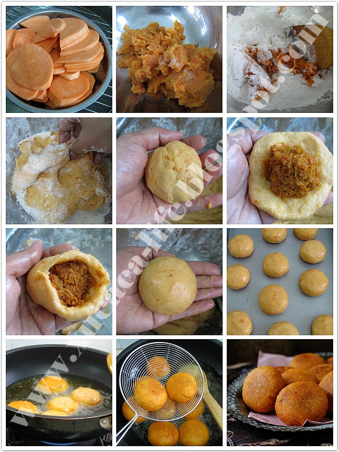 是用番薯搓面团,然后里头包三巴虾米的。知道是不难做的。