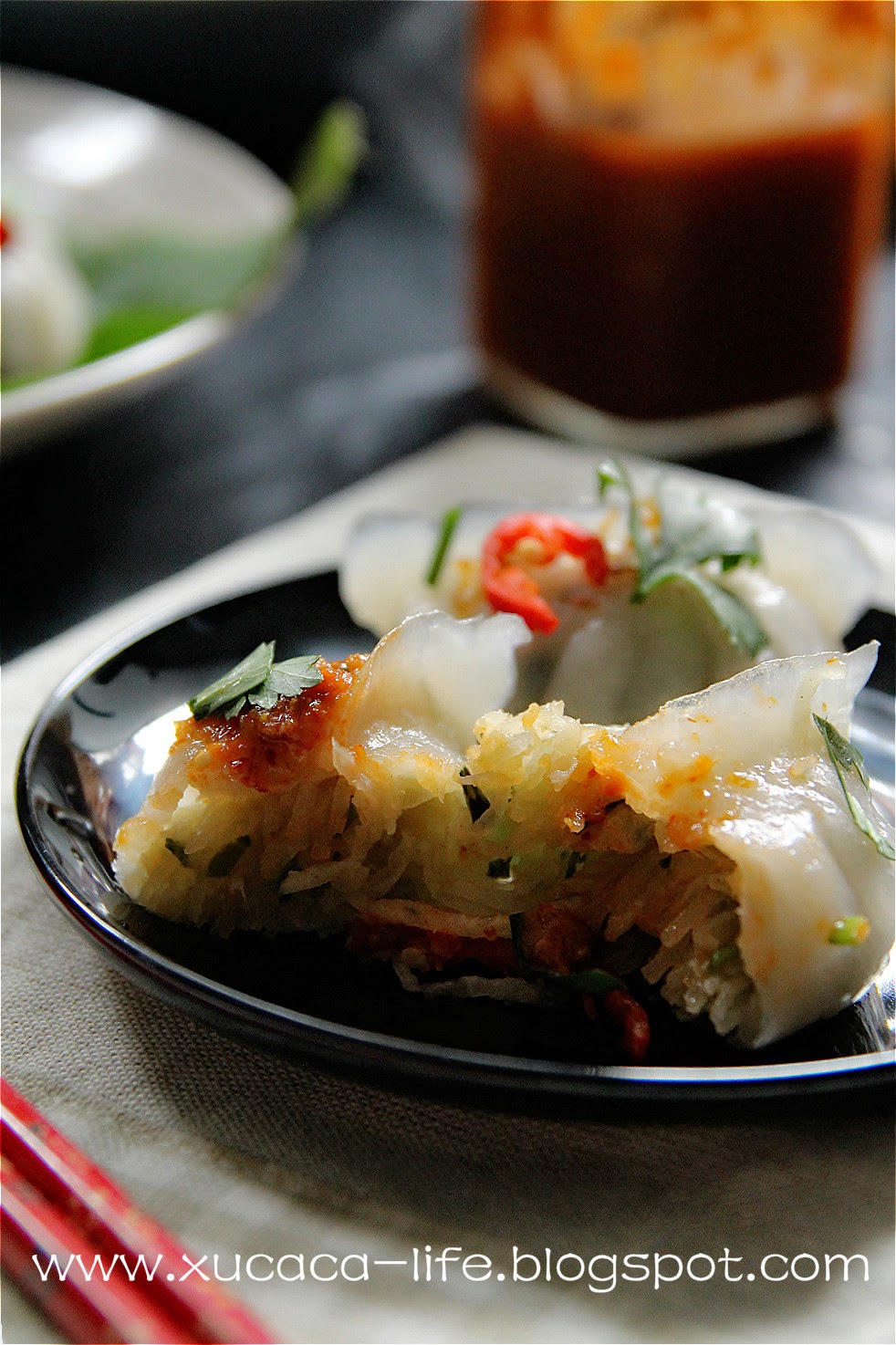 这次娘子把澄面粉加了,就和木薯粉的分量一样。出来的粿皮也是OK。而且也不会粘手。很好拿捏。