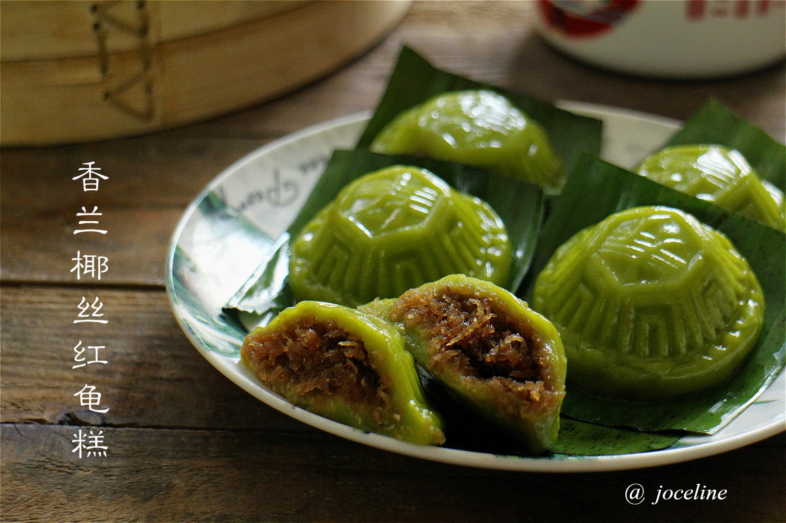 香兰椰丝红龟糕(Pandan Ang Ku Kuih)