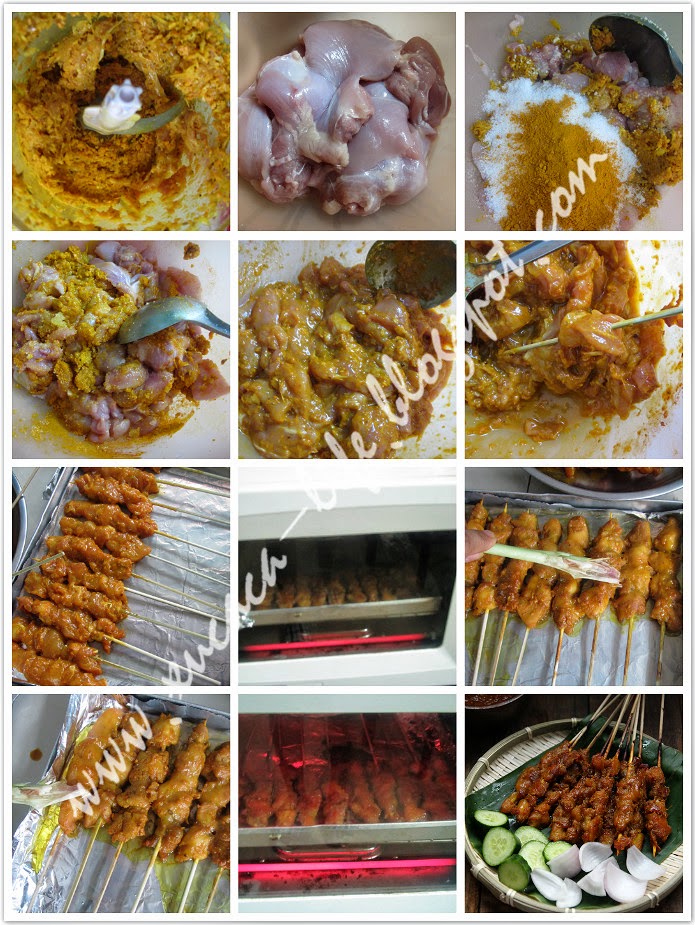 * 把沙爹烤得刚刚好,不要过焦、过硬。可以不点酱使用。鸡肉腌了好几个小时,会比较入味。
