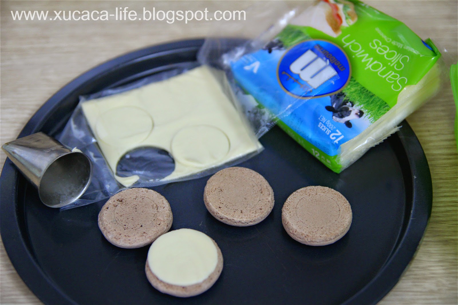 这次想到了宝贝们都爱吃芝司片,所以就直接把芝司片当夹心好了。