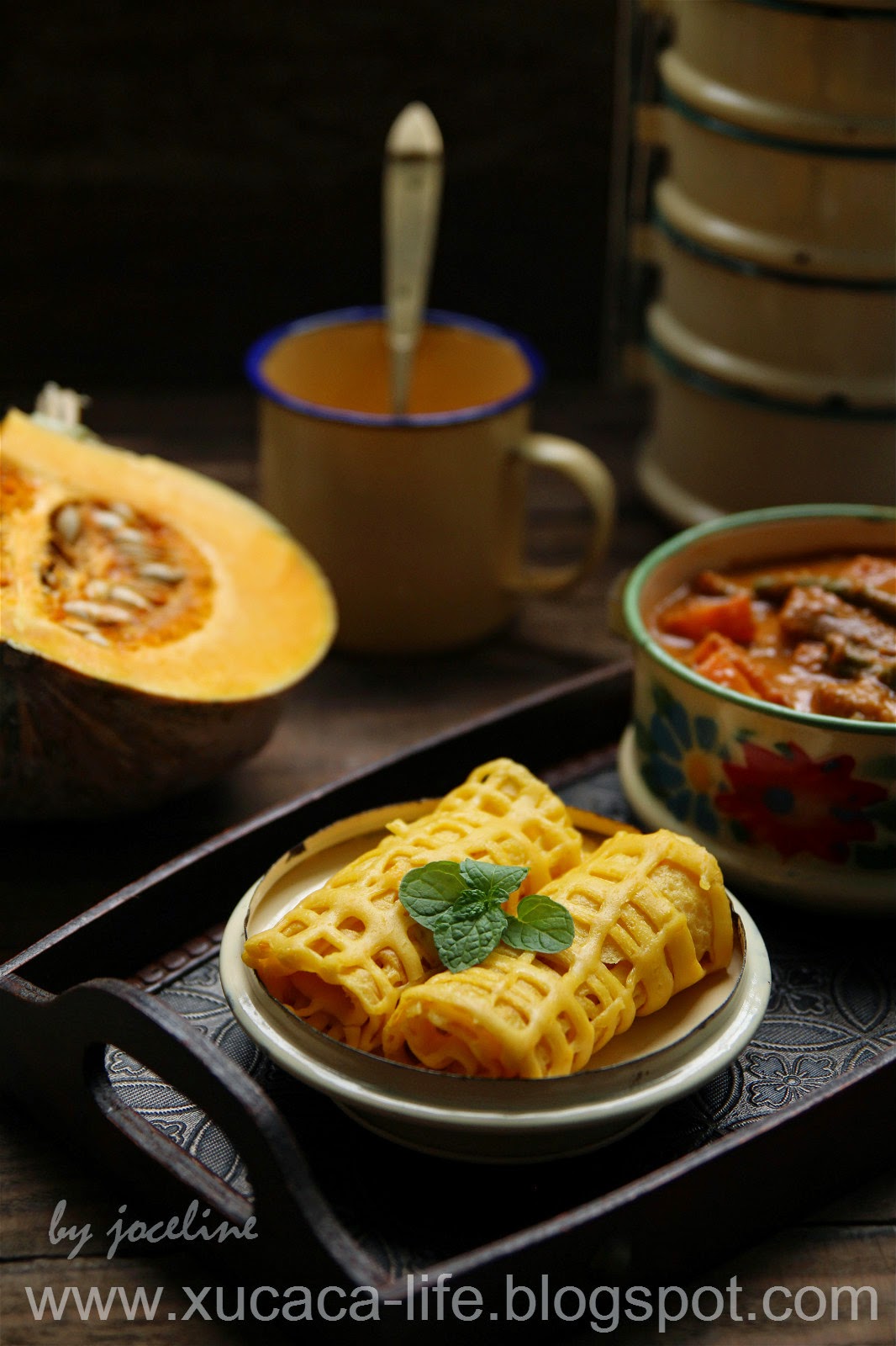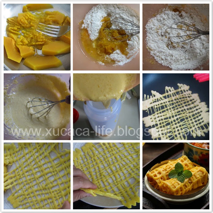 这一天,在面糊里加了南瓜泥。网糕也就变成了自然的金黄色了。