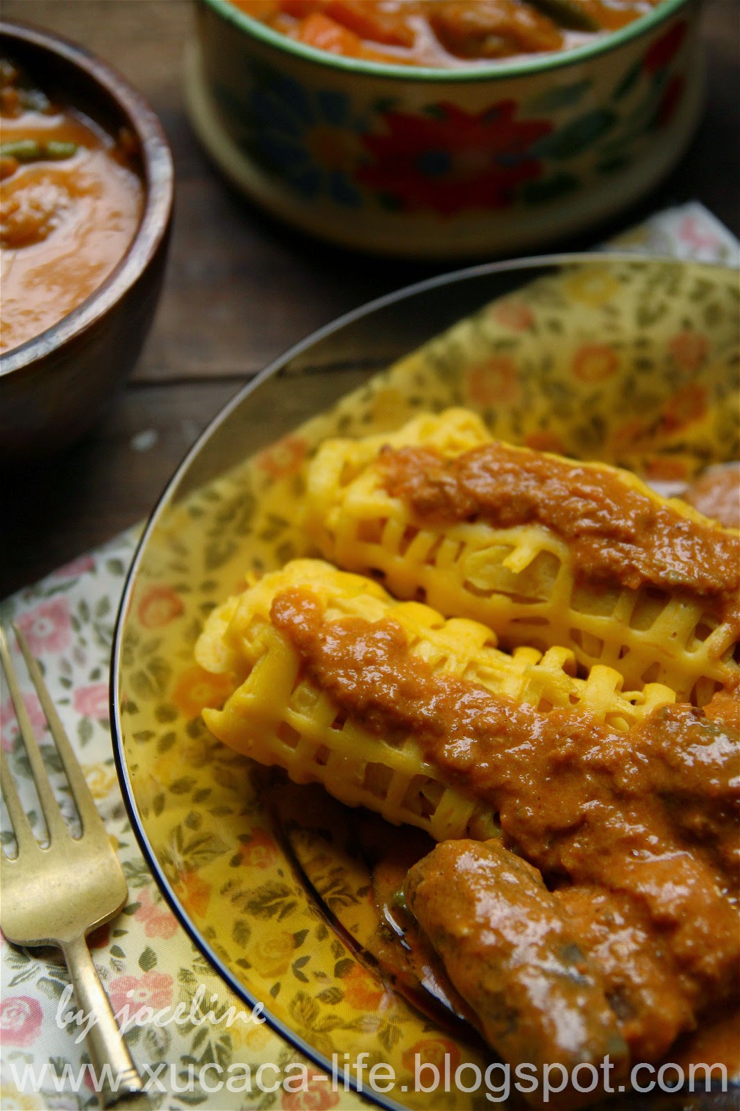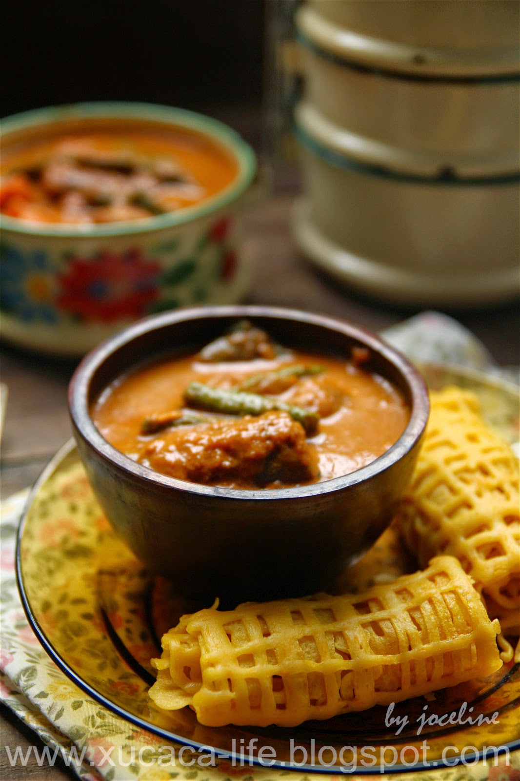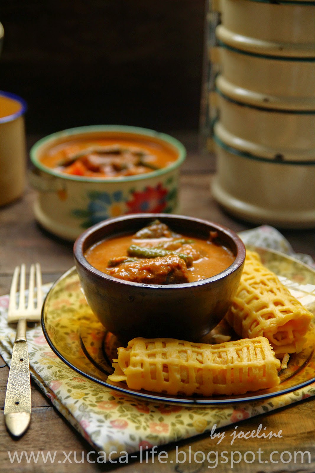 4)把网糕取出,折起卷好。配上咖哩即可享用。