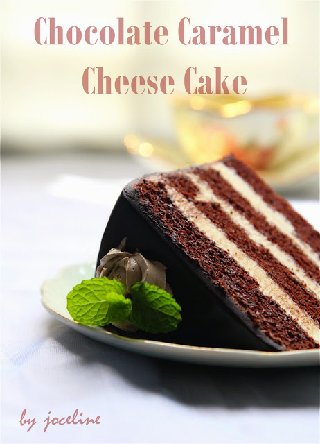 1。将一片巧克力蛋糕体放入慕斯圈里,再铺上一层大约150 - 160克的焦糖芝士慕思。