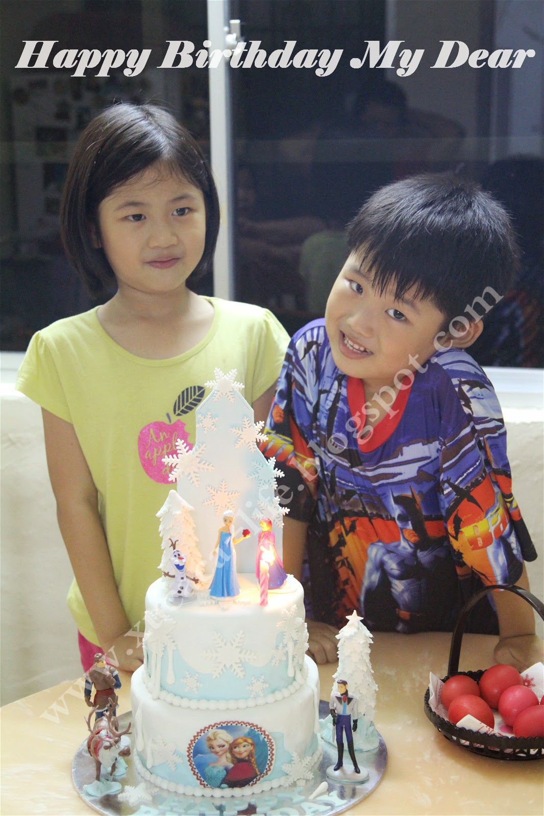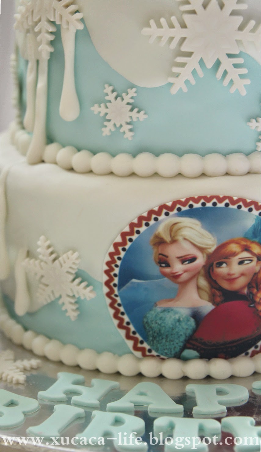 $ 0 0 小洪荭8岁生日,点了双层 Frozen 蛋糕。娘子没有为她准备了特别的礼物,所以就答应了为她做个蛋糕。双层翻糖蛋糕对娘子来说是大大的挑战。从烘烤蛋糕和翻糖装饰过程中都遇到了不少问题。当然要感谢翻糖高手 Li Shuan的意见和教导。感恩、好感恩。。 这次选了水晶家的湿润巧克力蛋糕和之前的原味奶油蛋糕做蛋糕体。再抹上咖啡奶油,味道‘嘟嘟hor’。。。。。。 Happy Birthday To You!!