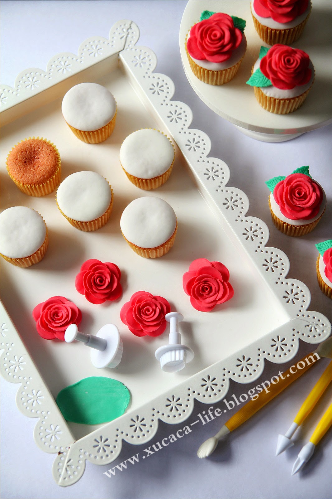 之前 学捏了小朵玫瑰花。这次趁假日有空再学捏另一款比较大朵的玫瑰。
