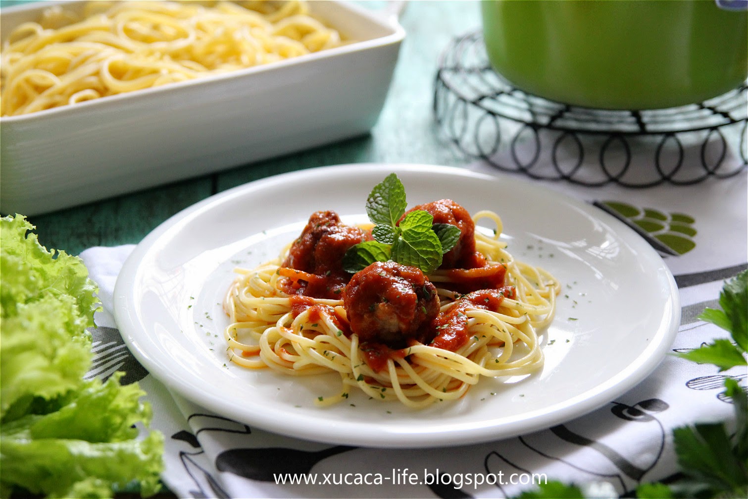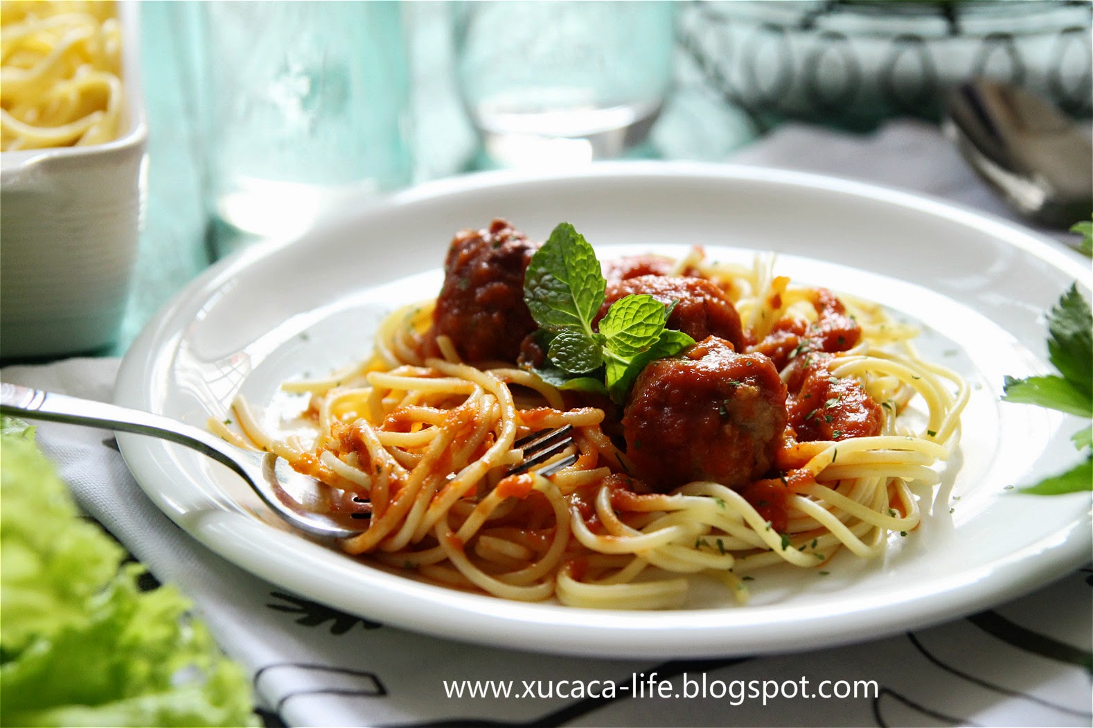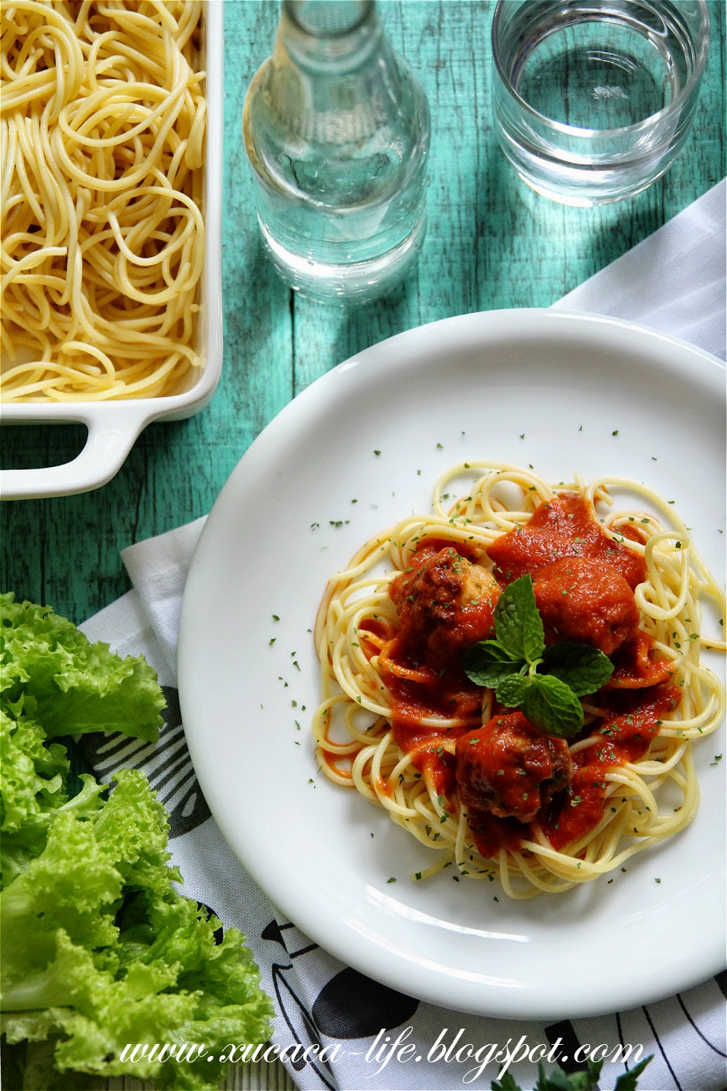 记录已久的番茄酱肉丸意面。食谱取自晓晓家。