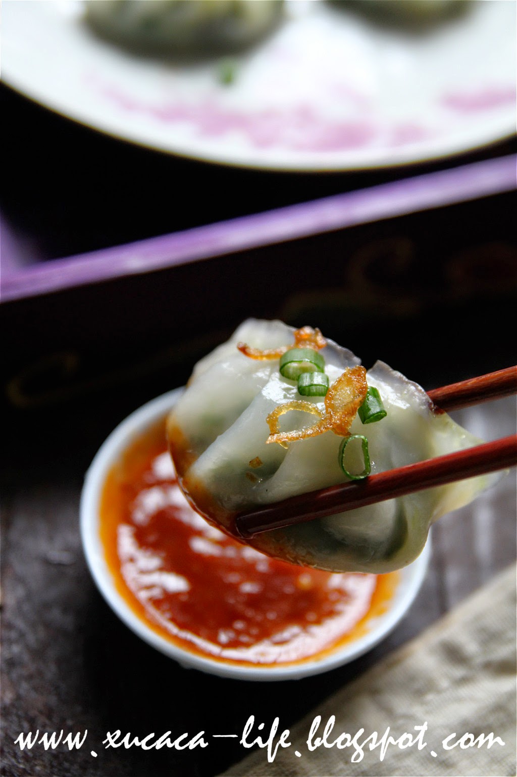 6)取出,抹上酸香油或者香葱油,表层撒上油葱,点上辣椒酱即可享用。