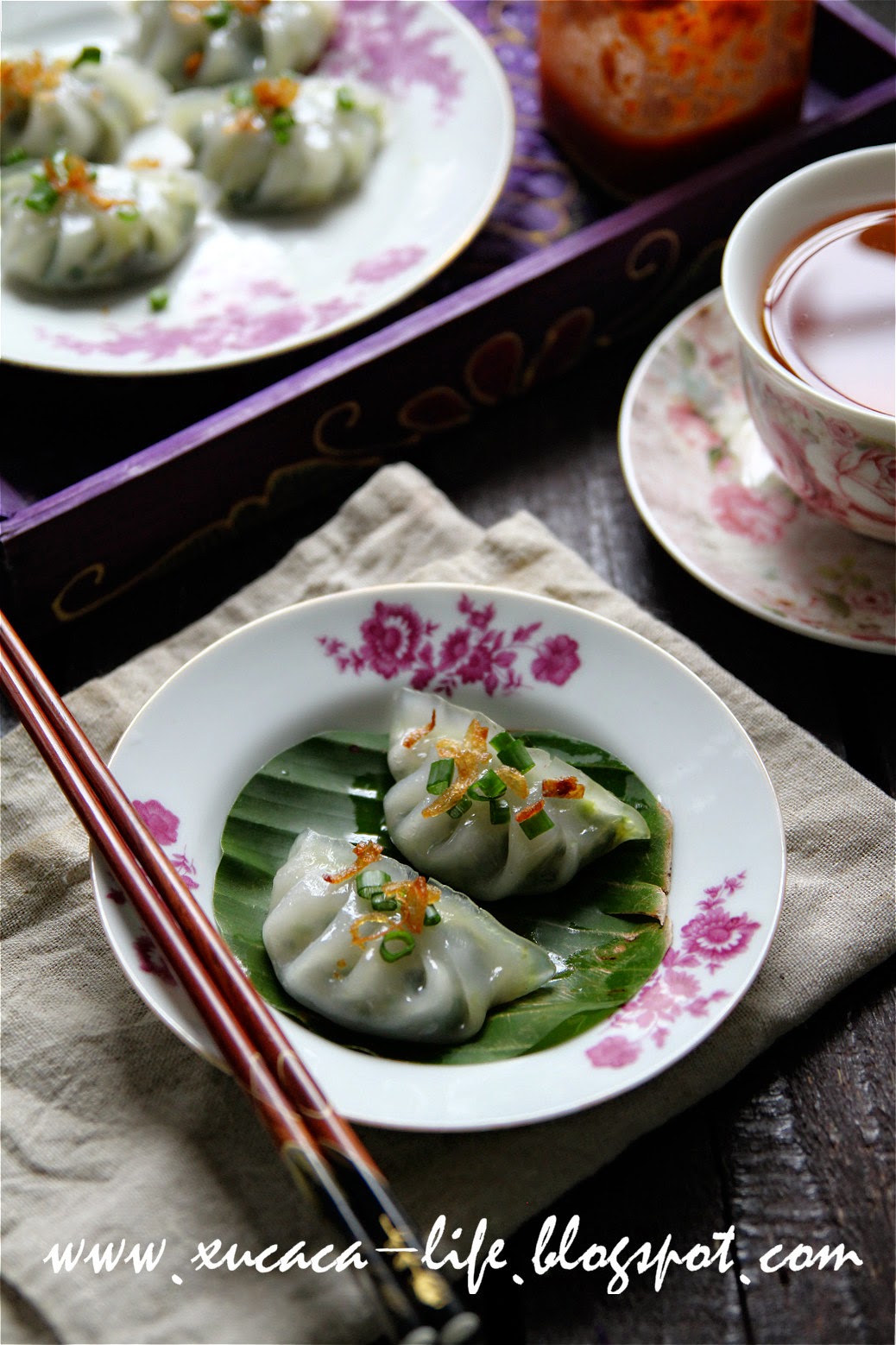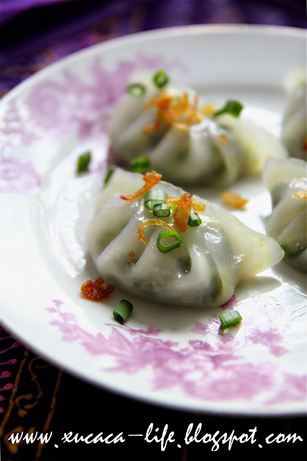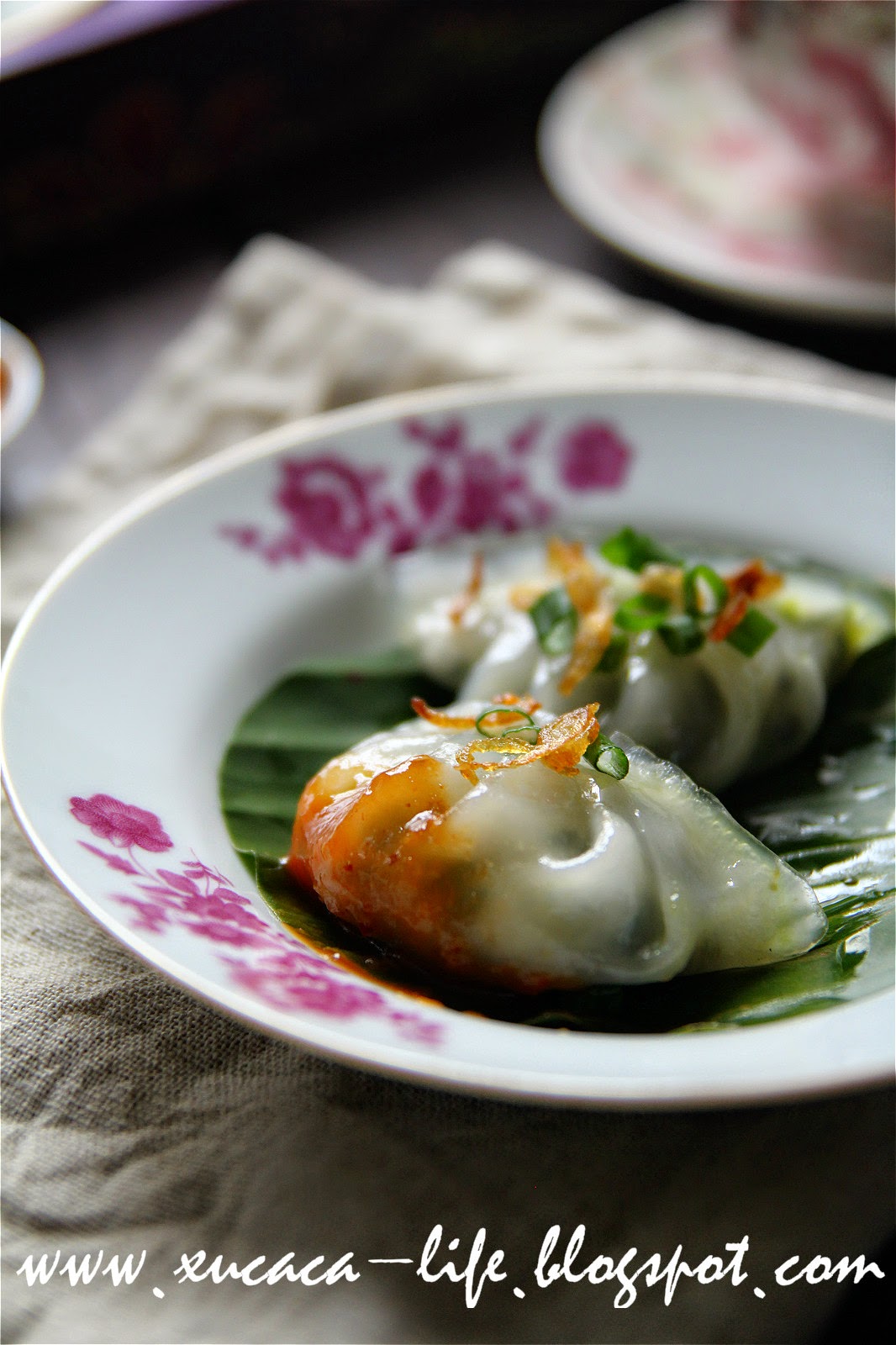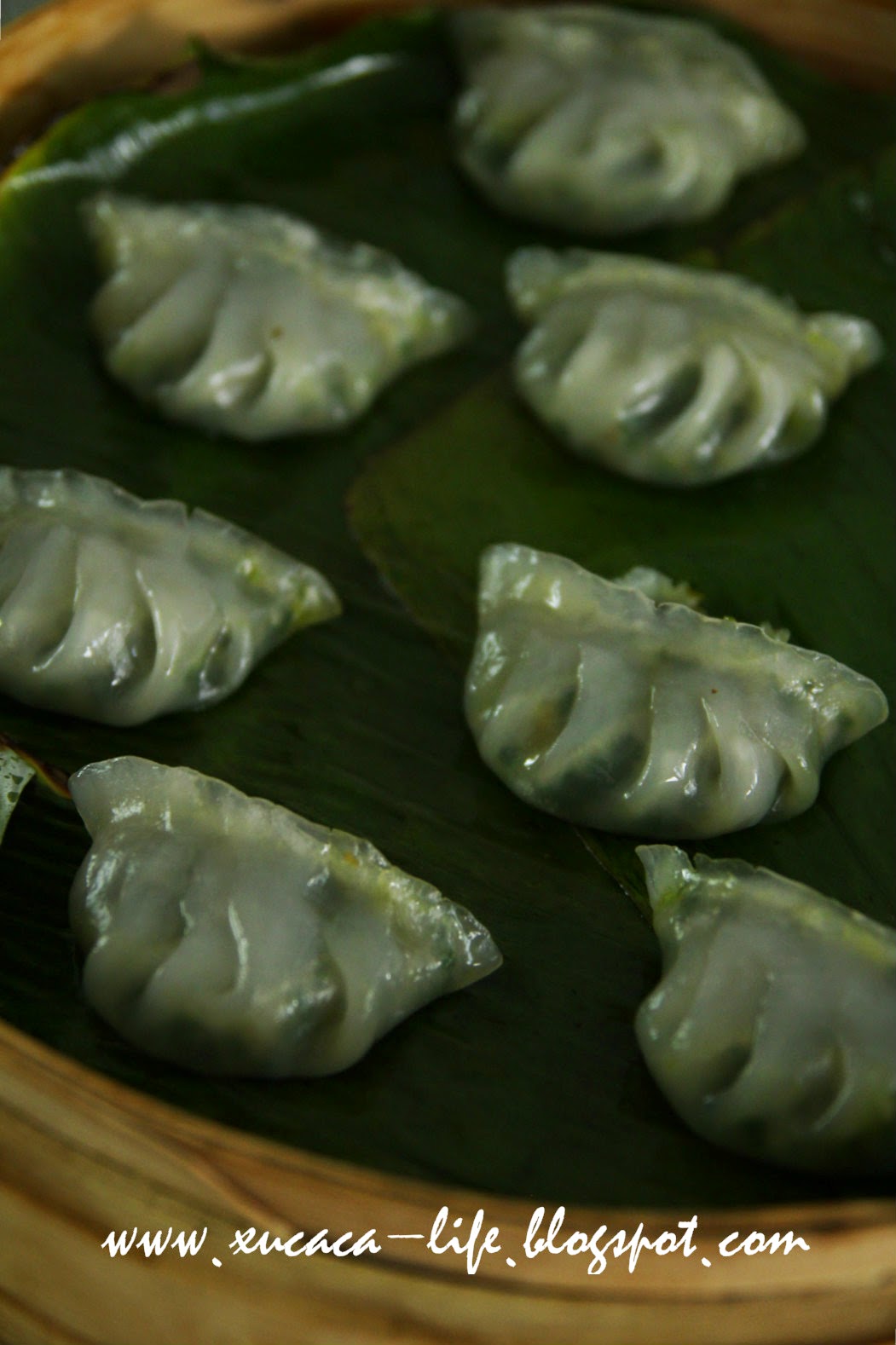 5)蒸炉加水开滚后,以中火蒸上10 - 12 分钟至菜粿变得透明即可。如果小个的菜粿 蒸8-10分钟即可。
