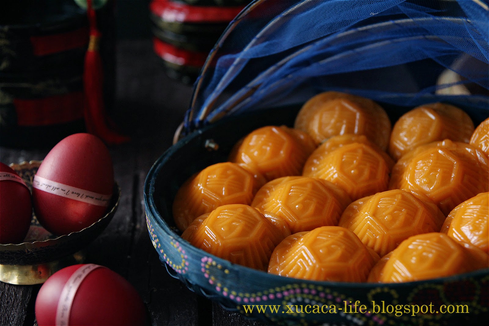 百多个AngKu 、20个蛋糕、还有水煮红鸡蛋。