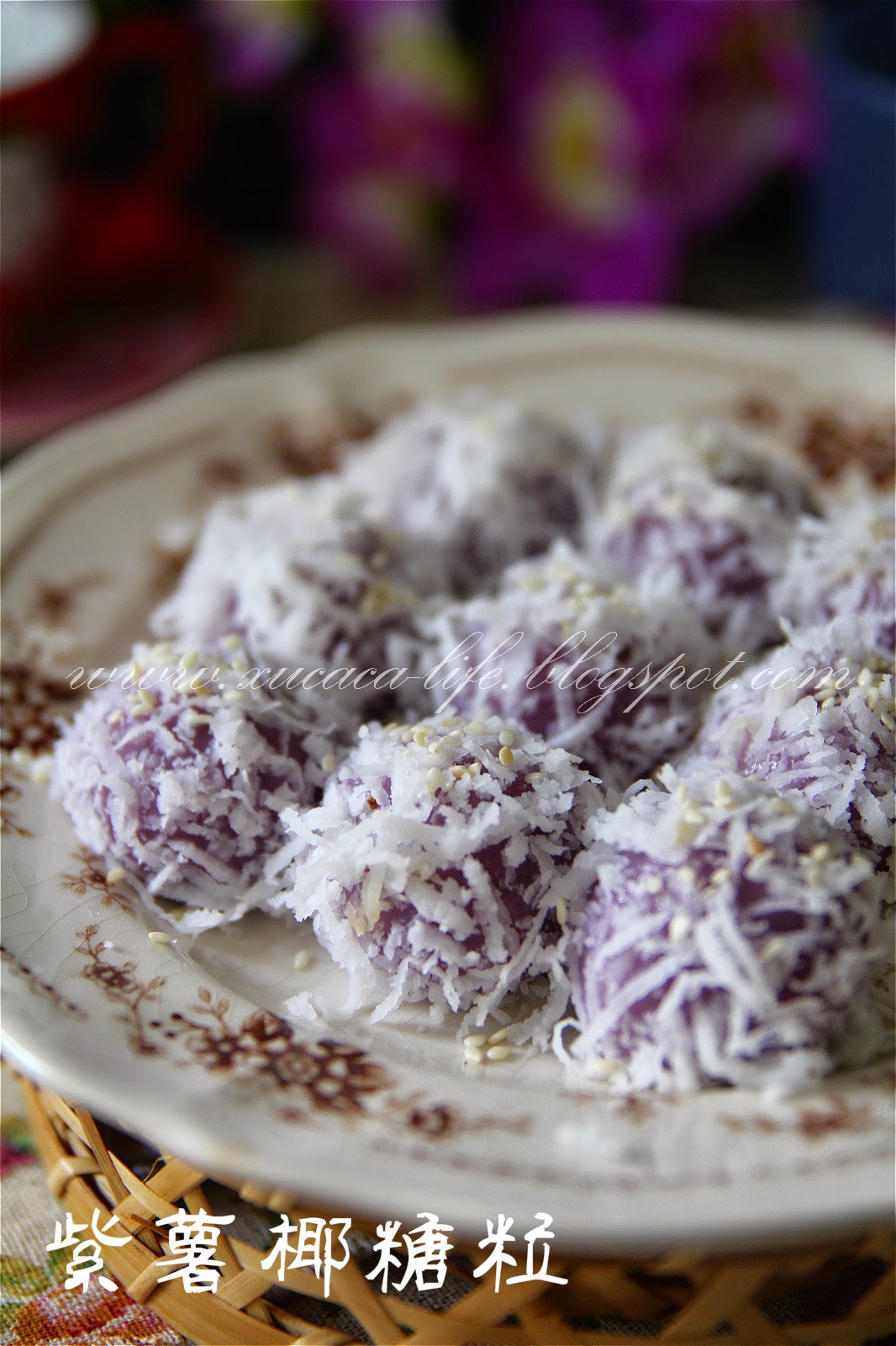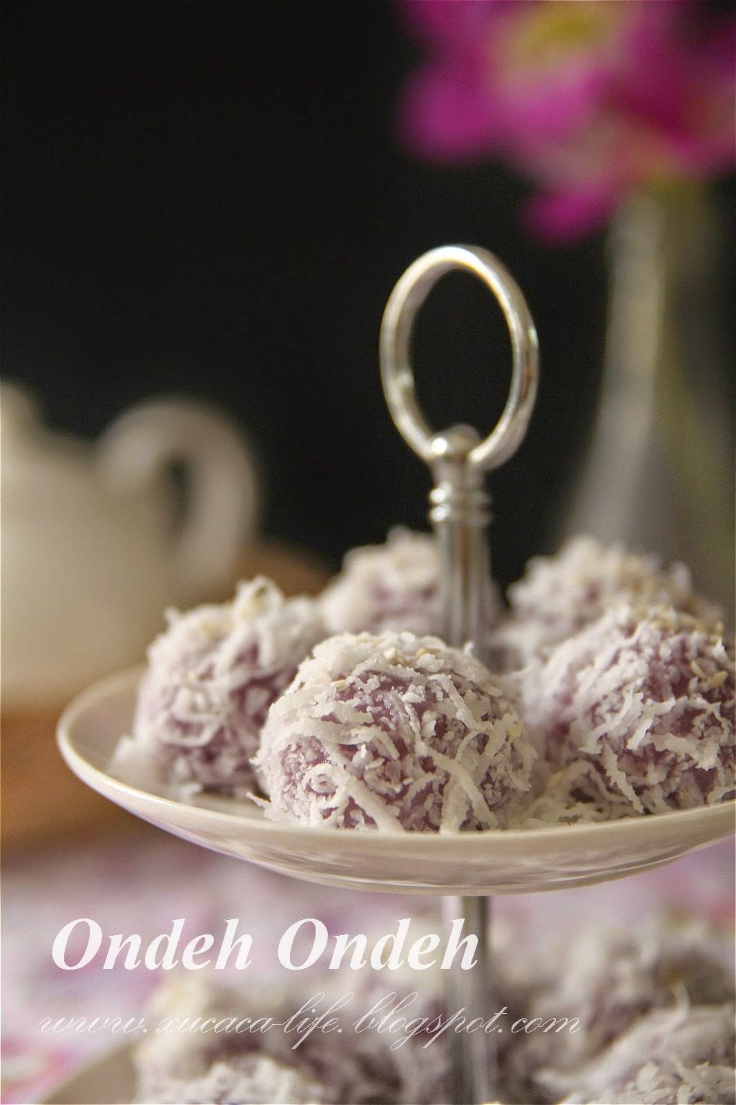 第三道 - Ondeh Ondeh (紫薯椰糖粒)。