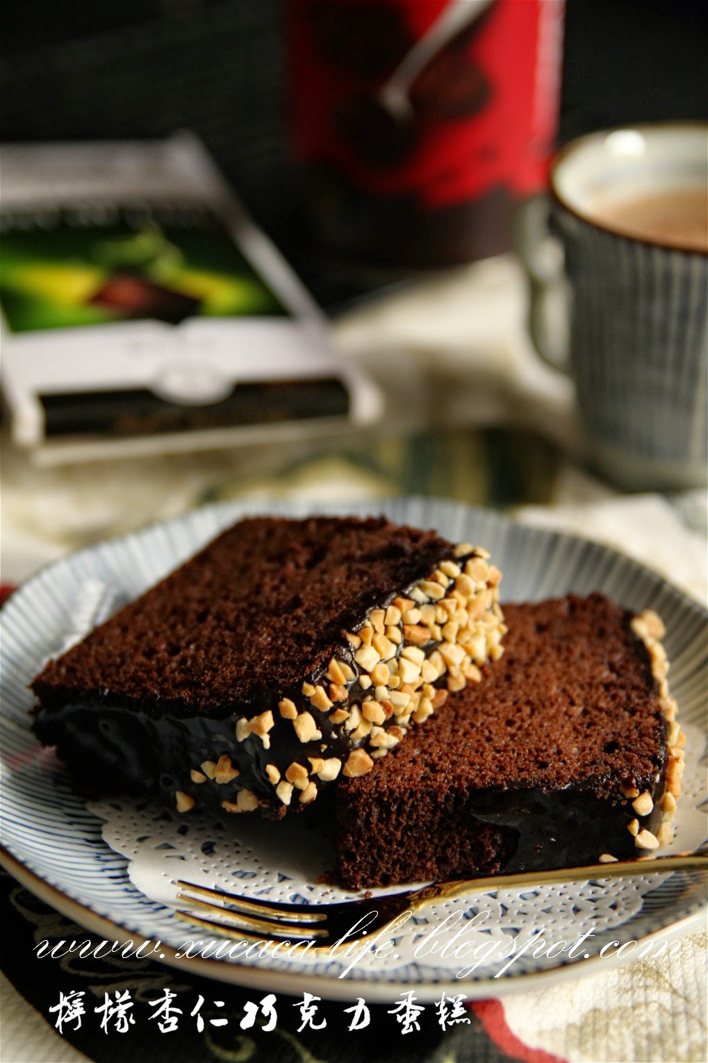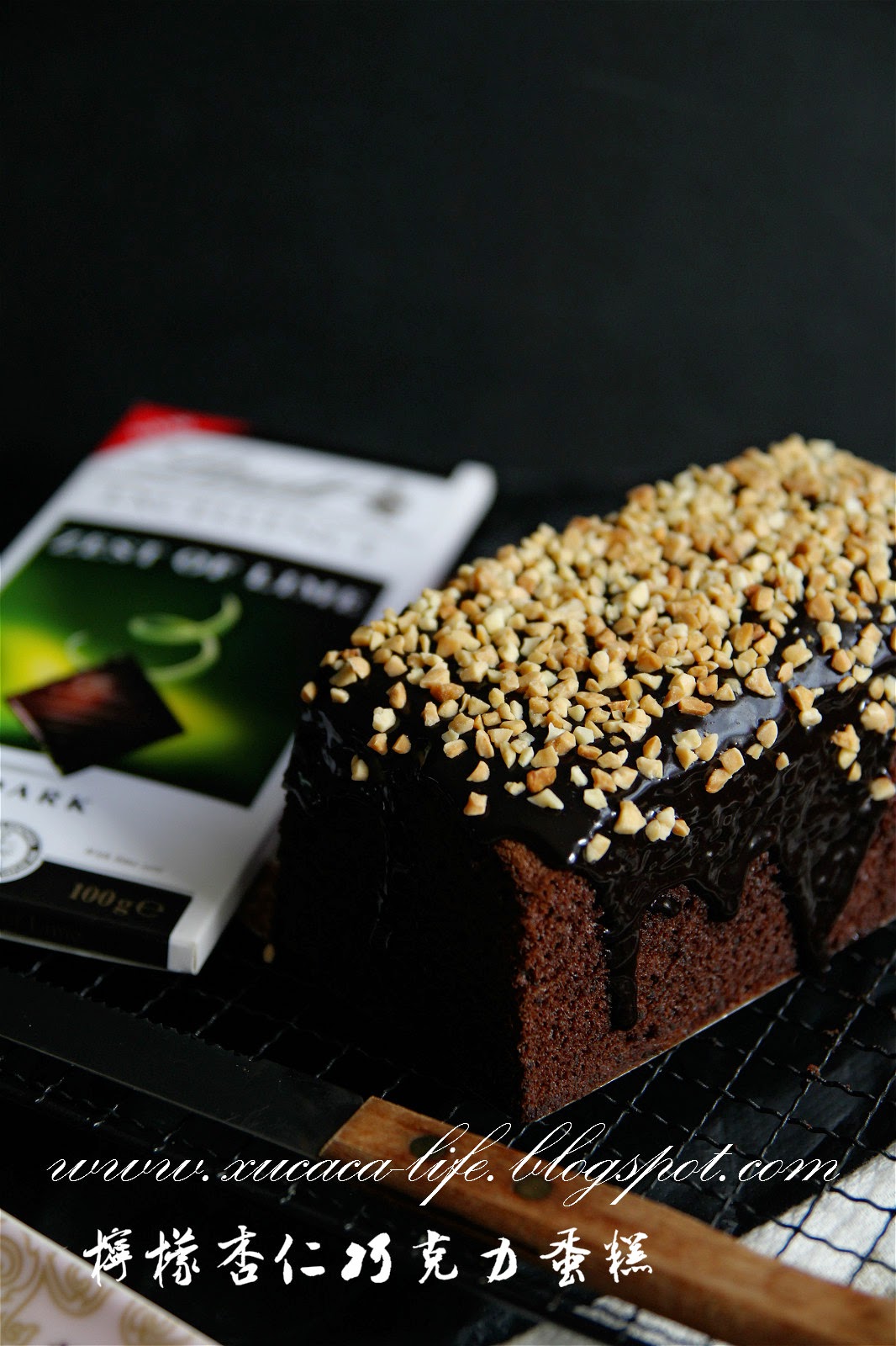8) 把了淋面的巧克力浆倒在蛋糕表层。然后撒上烤香后的杏仁碎。