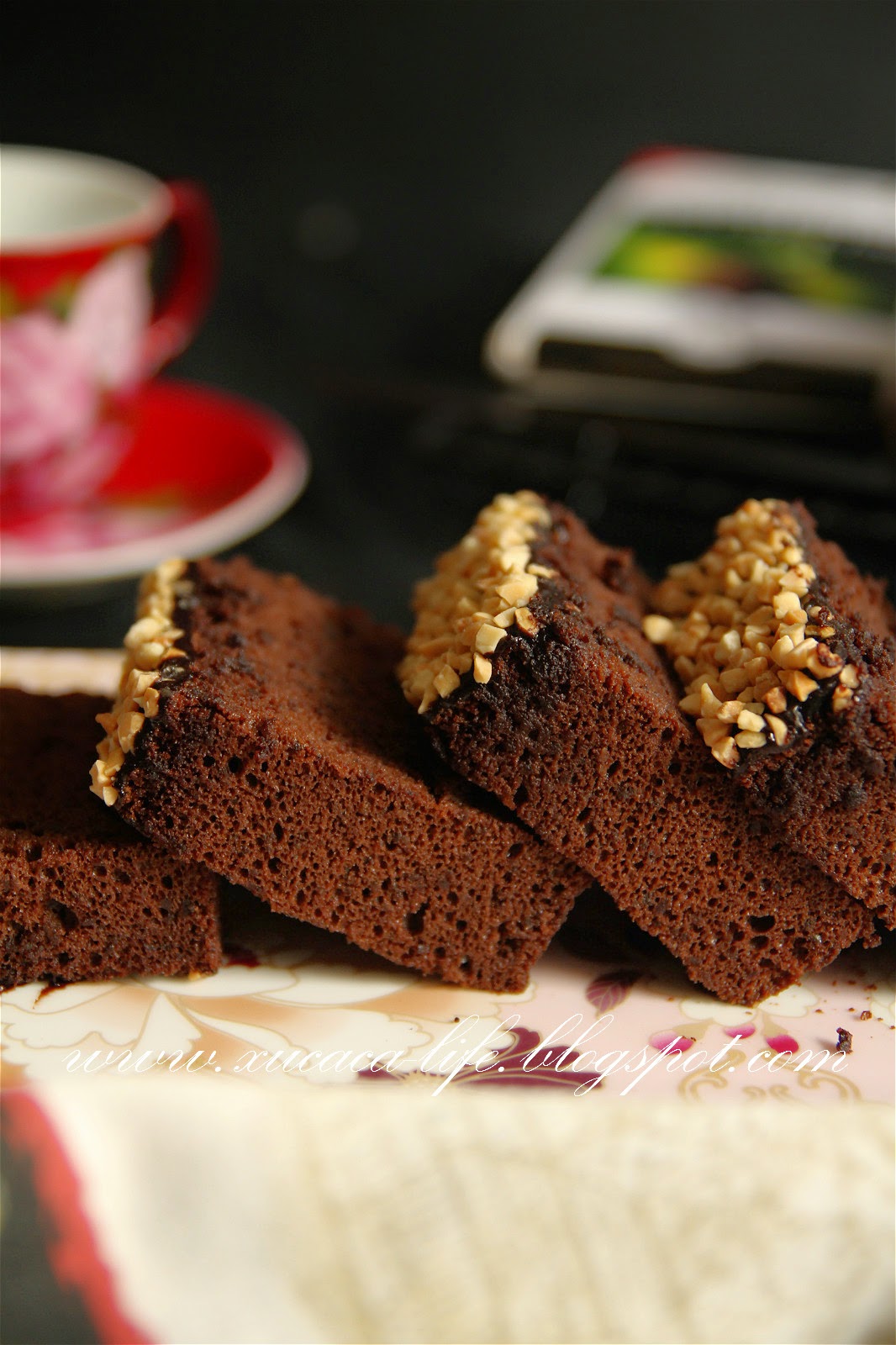 5) 把蛋白霜分次拌入巧克力面糊里,轻拌均匀。(从底部拌上)