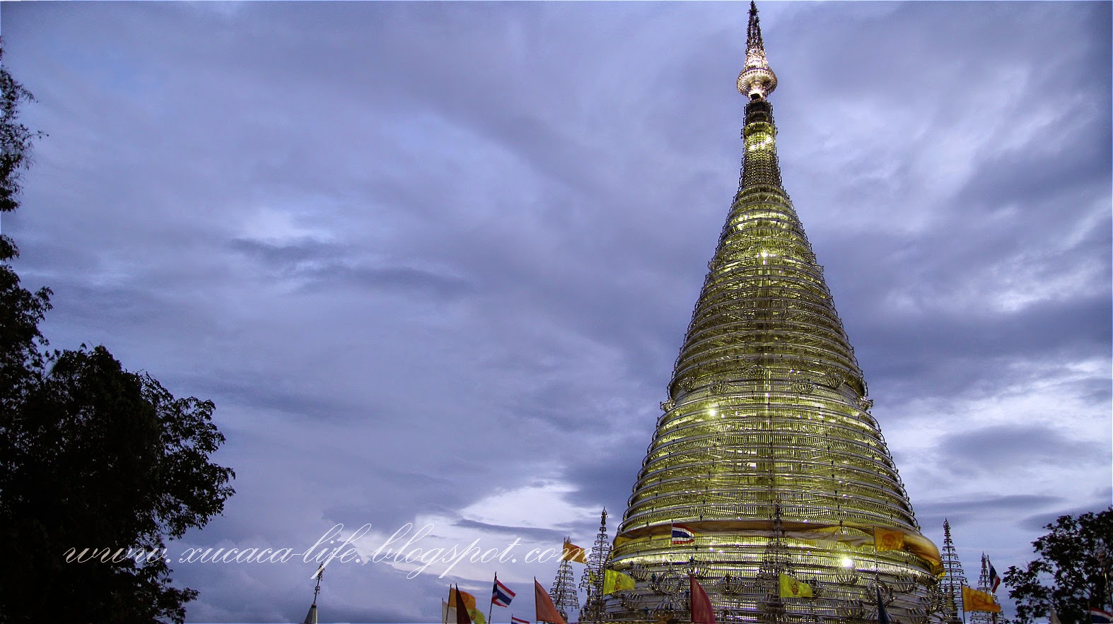 此刻可看到佛塔闪闪发亮的景色。这佛塔漂亮又壮观。