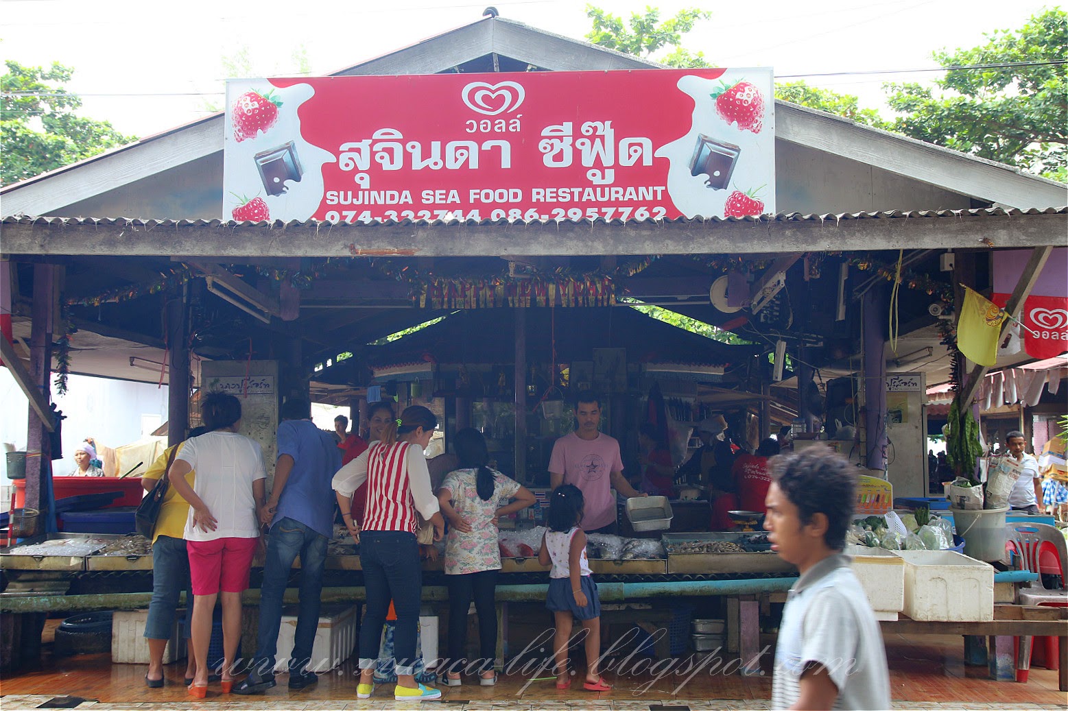 中午就在这家 Sujinda海鲜吃午餐。就座落在 Samila 海滩附近而已。