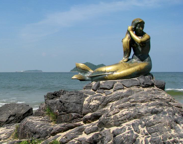 最终姑娘化成美人鱼铜像,永远守望着撒米拉海滩。