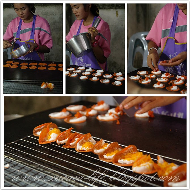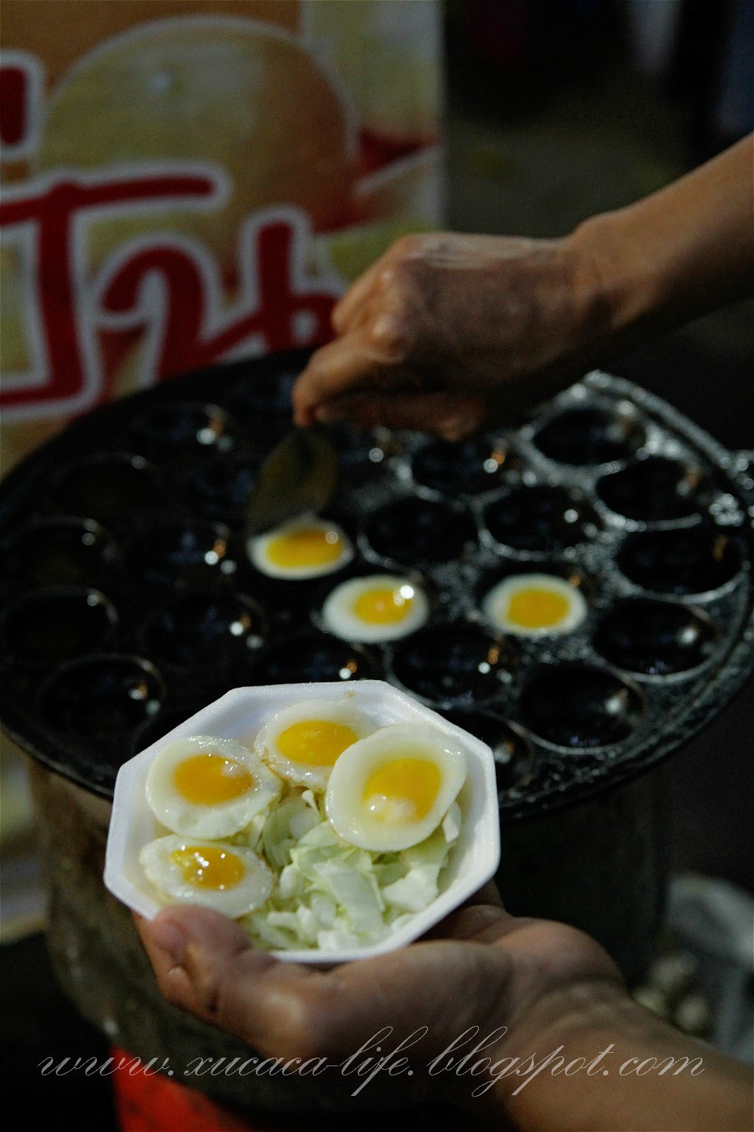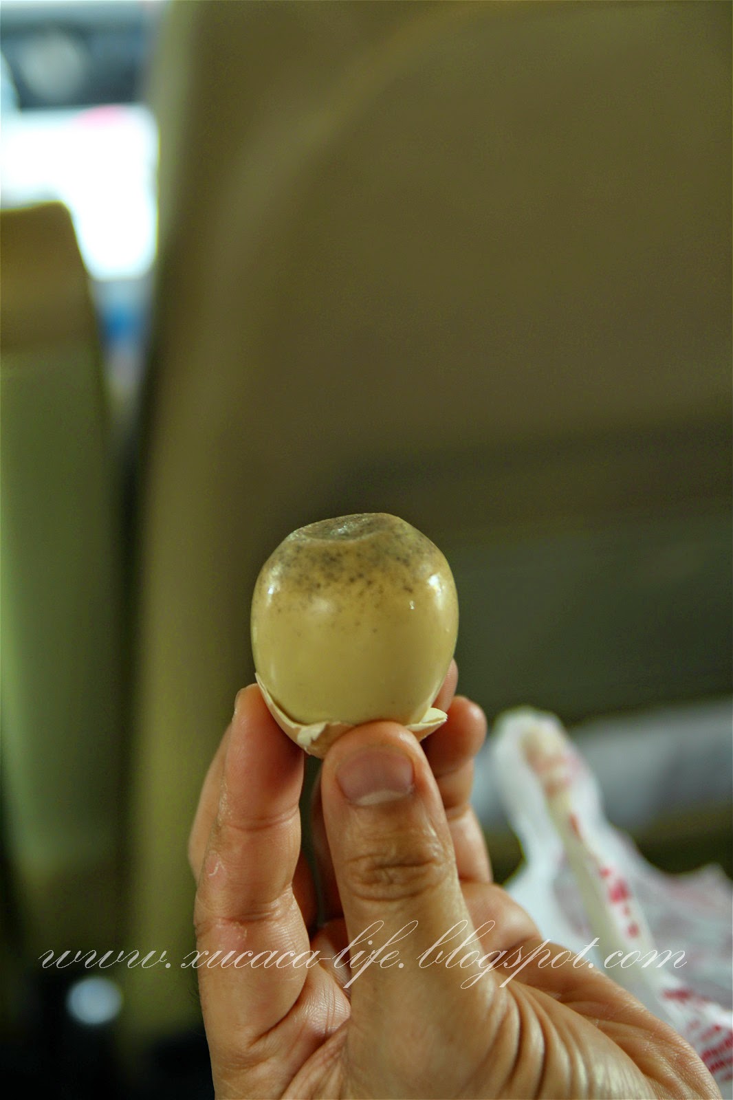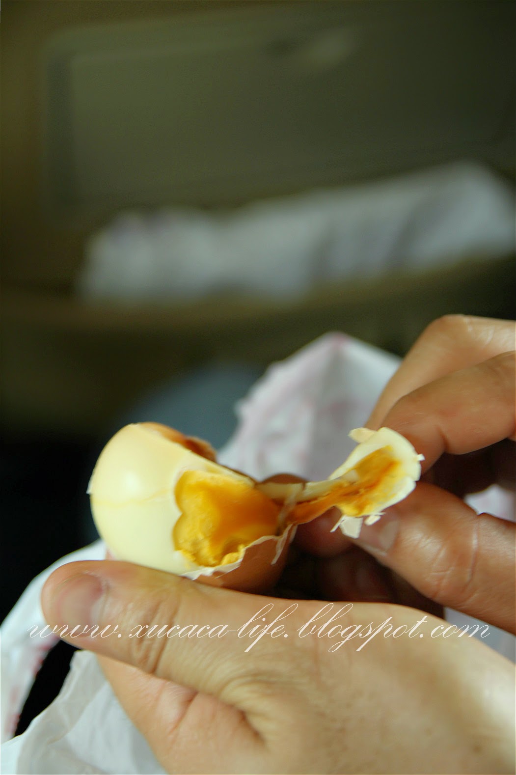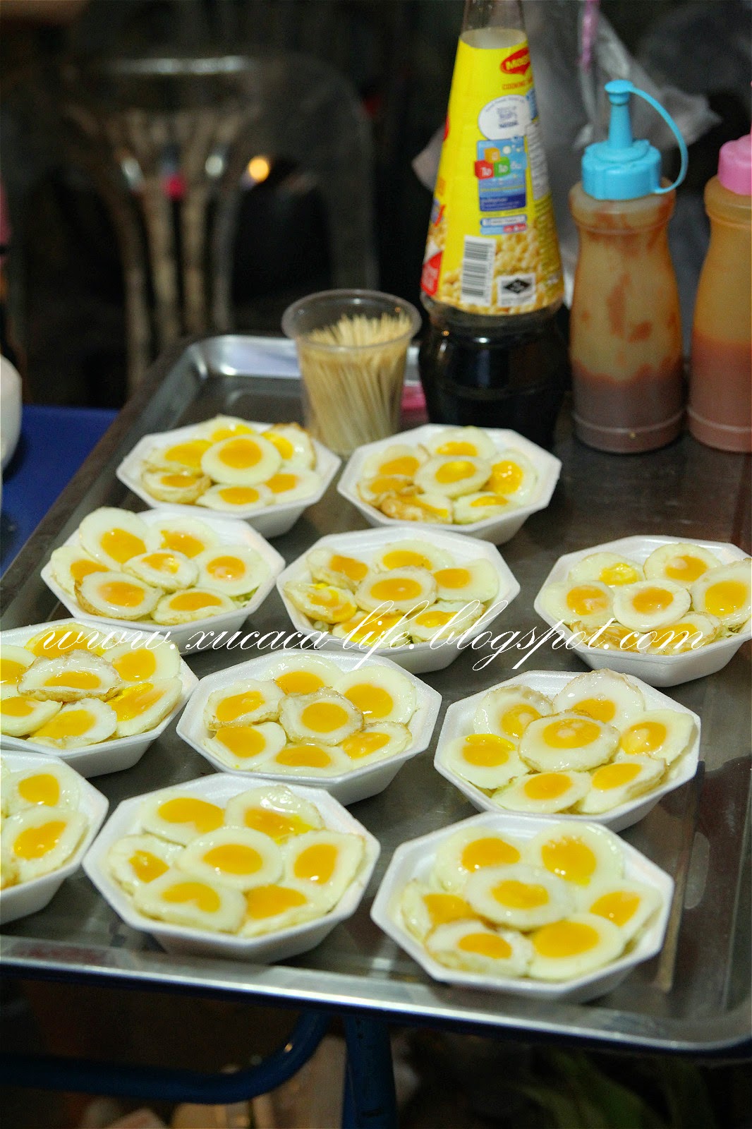在海边有好多挑摊子的小贩。这次尝试到加了调味料的薰蛋。