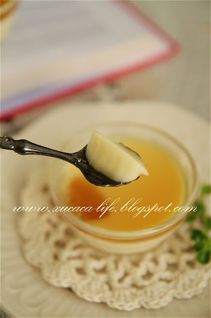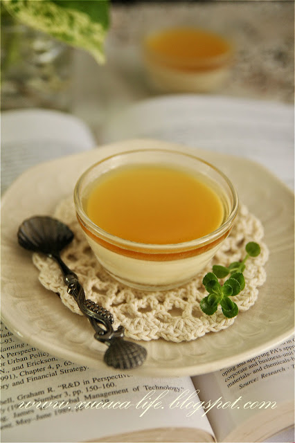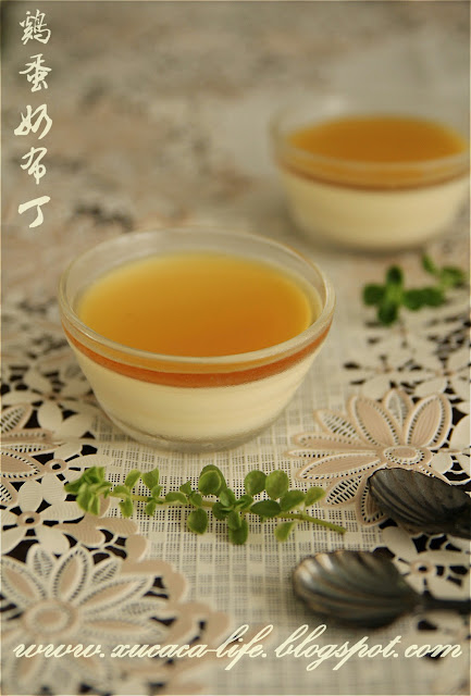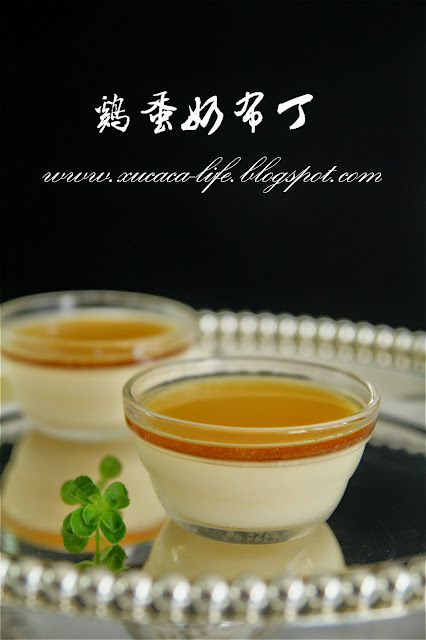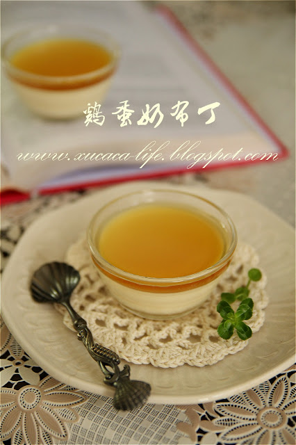 6)布丁完全凝固后,再把以上做法的焦糖浆倒在布丁表层上。